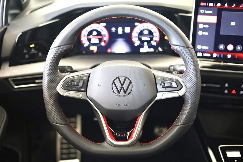 Advanced safety features include Forward Collision Warning with Autonomous Emergency Braking, Lane Departure Warning, Active Cruise Control, and an Exterior Parking Camera. Rain sensing wipers, LED lighting, and the GTIs distinctive styling ensure it stands out in any setting.