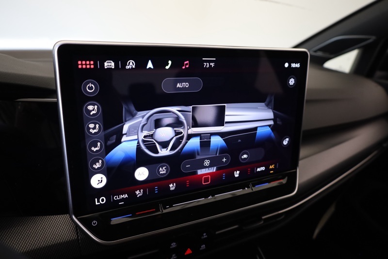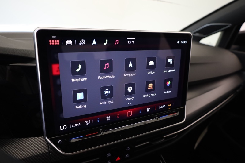 Inside, the Titan Black cabin surrounds you with upscale sport luxury. Heated and ventilated Top Sport Seats in Vienna leather with perforated inserts, a heated leather steering wheel, and padded door panels with leatherette inserts set the tone. A panoramic moonroof brings in the light, while the harman/kardon premium audio system and 12.9" MIB3 Discover Pro touchscreen with navigation keep you connected and entertained.