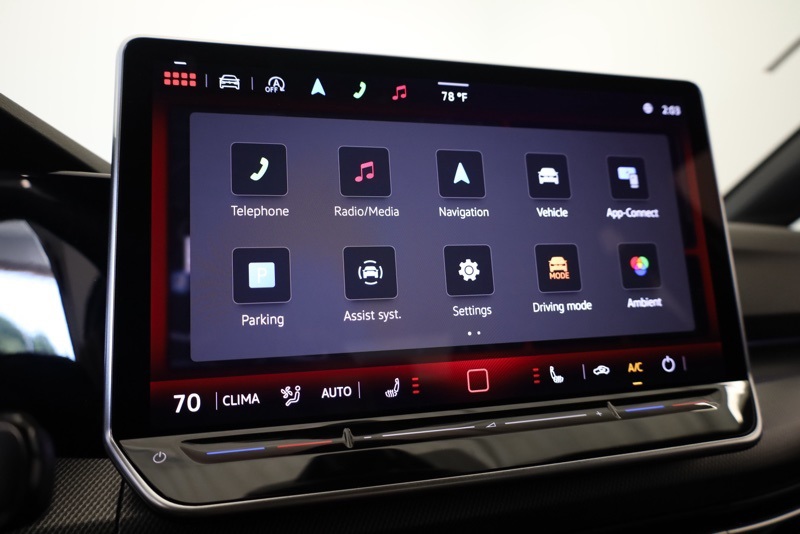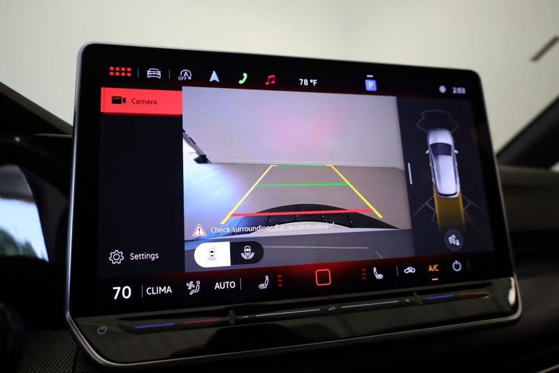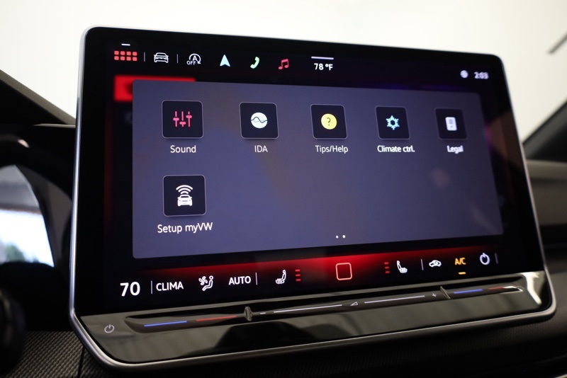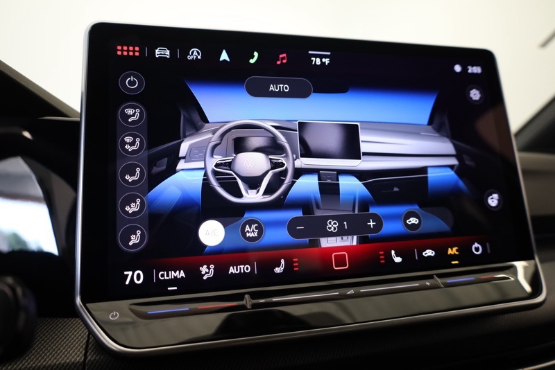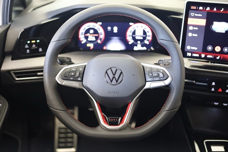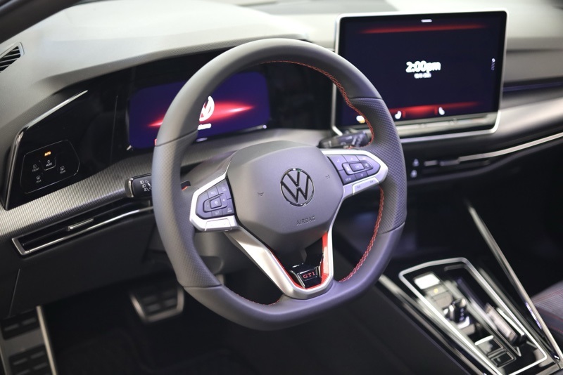 Inside, the Titan Black and Scalepaper Plaid cabin pays homage to GTI tradition with its distinctive cloth Top Sport Seats. A heated leather steering wheel, heated front seats, and a 12.9" MIB3 Discover Pro touchscreen with navigation create a driver focused space that blends comfort and technology.