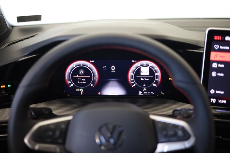Safety and convenience come standard with Forward Collision Warning with Autonomous Emergency Braking, Lane Departure Warning, rain sensing wipers, and an Exterior Parking Camera. The 18" 2 Tone machined alloy wheels, LED lighting, and subtle red GTI accents complete the look.