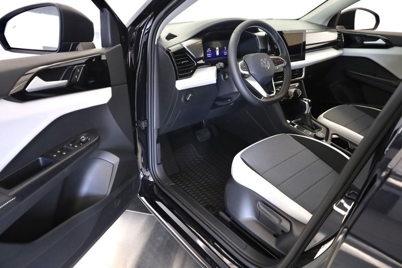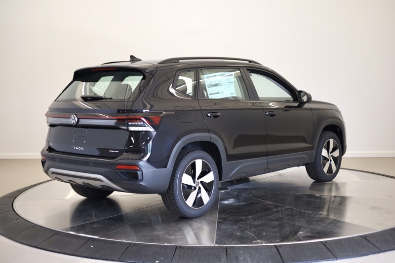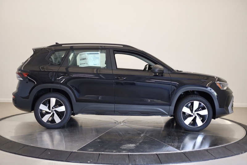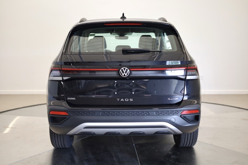 4-Wheel Disc Brakes, 6 Speakers, ABS brakes, Active Blind Spot Monitor, Air Conditioning, Alloy wheels, AM/FM radio, Auto High-beam Headlights, Brake assist, Bumpers: body-color, Cloth Seating Surfaces, Compass, Delay-off headlights, Driver door bin, Driver vanity mirror, Dual front impact airbags, Dual front side impact airbags, Electronic Stability Control, Emergency communication system: VW Car-Net Safe & Secure 5-year, Exterior Parking Camera Rear, Four wheel independent suspension, Front anti-roll bar, Front Bucket Seats, Front Center Armrest, Front reading lights, Front Strut Rear Multi-Link Suspension, Fully automatic headlights, Heated door mirrors, Heated Front Bucket Seats, Heated front seats, Heated steering wheel, Illuminated entry, Leather Shift Knob, Low tire pressure warning, Occupant sensing airbag, Outside temperature display, Overhead airbag, Overhead console, Panic alarm, Passenger door bin, Passenger vanity mirror, Power door mirrors, Power windows, Radio data system, Radio: MIB3 Composition Color AM/FM, Rain sensing wipers, Rear anti-roll bar, Rear seat center armrest, Rear window defroster, Rear window wiper, Remote keyless entry, Speed control, Speed-sensing steering, Split folding rear seat, Spoiler, Steering wheel mounted audio controls, Tachometer, Telescoping steering wheel, Tilt steering wheel, Traction control, Trip computer, Variably intermittent wipers, Wheels: 18" 2-Tone Machined Alloy. Deep Black Pearl 2025 Volkswagen Taos 1.5T S AWD 8-Speed Automatic with Tiptronic 1.5L I4 Turbocharged DOHC 16V LEV3-SULEV30 174hp