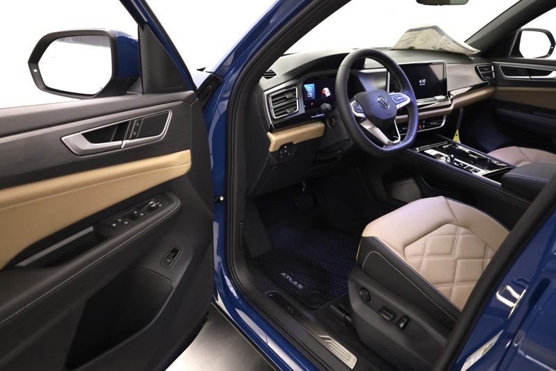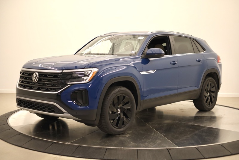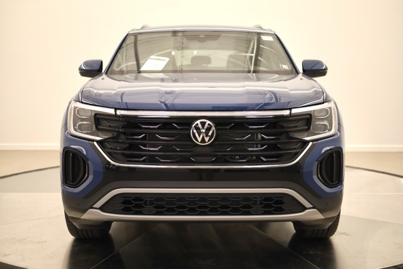 4-Wheel Disc Brakes, 4-Wheel Independent Suspension, 6 Speakers, ABS brakes, Air Conditioning, Alloy wheels, AM/FM radio: SiriusXM with 360L, Auto High-beam Headlights, Auto-dimming Rear-View mirror, Automatic temperature control, Brake assist, Bumpers: body-color, Compass, Delay-off headlights, Driver door bin, Driver vanity mirror, Dual front impact airbags, Dual front side impact airbags, Electronic Stability Control, Exterior Parking Camera Rear, Four wheel independent suspension, Front anti-roll bar, Front Bucket Seats, Front Center Armrest, Front dual zone A/C, Front fog lights, Front reading lights, Fully automatic headlights, Heated door mirrors, Heated front seats, Heated steering wheel, Illuminated entry, Low tire pressure warning, Occupant sensing airbag, Outside temperature display, Overhead airbag, Overhead console, Panic alarm, Panoramic Sunroof Package, Passenger door bin, Passenger vanity mirror, Perforated V-Tex Leatherette Seating Surfaces, Power door mirrors, Power driver seat, Power Liftgate, Power steering, Power windows, Radio data system, Rain sensing wipers, Rear anti-roll bar, Rear reading lights, Rear seat center armrest, Rear window defroster, Rear window wiper, Remote keyless entry, Security system, Speed control, Speed-sensing steering, Split folding rear seat, Spoiler, Steering wheel mounted audio controls, Tachometer, Telescoping steering wheel, Tilt steering wheel, Traction control, Trip computer, Turn signal indicator mirrors, Variably intermittent wipers, Ventilated front seats, VW Care, Wheels: 20" 5-Spoke 2-Tone Machined Alloy. mountain lake blue metallic 2026 Volkswagen Atlas Cross Sport 2.0T SE w/Technology AWD 8-Speed Automatic with Tiptronic 2.0L TSI