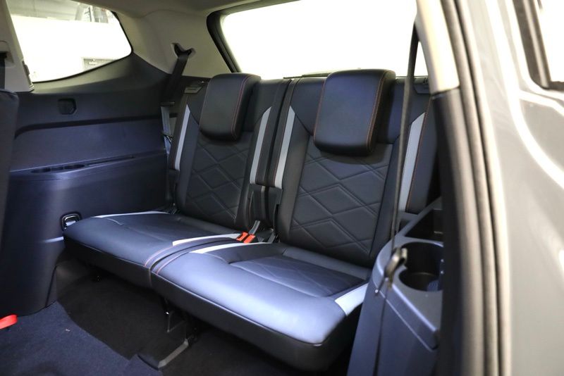 Inside, the 3rd row split bench gives you flexible seating for family, friends, or extra cargo. Perforated V Tex leatherette seating surfaces elevate the cabin, while heated and actively ventilated front bucket seats and a heated steering wheel keep you comfortable year round. Dual zone automatic climate control up front and rear air conditioning ensure comfort throughout the cabin. The panoramic power moonroof fills the interior with natural light, creating an open and upscale atmosphere. A power liftgate makes loading and unloading simple.