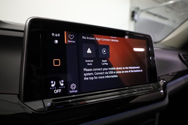 Safety features include dual front impact airbags, dual front side impact airbags, occupant sensing airbag, low tire pressure warning, panic alarm, security system, heated door mirrors, and VW Car Net Safe and Secure with 5 year emergency communication capability for added peace of mind.