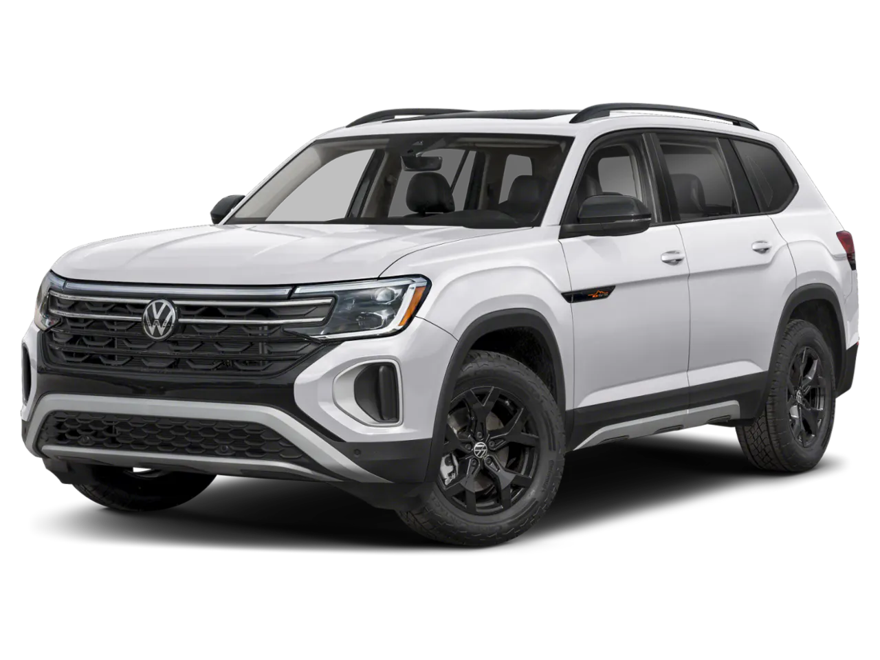 2nd-Row Dual Captain's Chairs, 3rd row seats: split-bench, 4-Wheel Disc Brakes, 4-Wheel Independent Suspension, 6 Speakers, ABS brakes, Air Conditioning, Alloy wheels, AM/FM radio: SiriusXM with 360L, Auto High-beam Headlights, Auto-dimming Rear-View mirror, Automatic temperature control, Brake assist, Bumpers: body-color, Compass, Delay-off headlights, Driver door bin, Driver vanity mirror, Dual front impact airbags, Dual front side impact airbags, Electronic Stability Control, Emergency communication system: VW Car-Net Safe & Secure 5-year, Exterior Parking Camera Rear, Four wheel independent suspension, Front anti-roll bar, Front Bucket Seats, Front Center Armrest, Front dual zone A/C, Front fog lights, Front reading lights, Fully automatic headlights, Garage door transmitter: Homelink, Heated and Actively Ventilated Front Bucket Seats, Heated door mirrors, Heated front seats, Heated steering wheel, Illuminated entry, Low tire pressure warning, Occupant sensing airbag, Outside temperature display, Overhead airbag, Overhead console, Panic alarm, Passenger door bin, Passenger vanity mirror, Perforated V-Tex Leatherette Seating Surfaces, Power door mirrors, Power driver seat, Power Liftgate, Power moonroof: Panoramic, Power steering, Power windows, Radio data system, Radio: MIB3 Composition Media, Rain sensing wipers, Rear air conditioning, Rear anti-roll bar, Rear reading lights, Rear seat center armrest, Rear window defroster, Rear window wiper, Remote keyless entry, Security system, Speed control, Speed-sensing steering, Split folding rear seat, Spoiler, Steering wheel mounted audio controls, Tachometer, Telescoping steering wheel, Tilt steering wheel, Traction control, Trip computer, Turn signal indicator mirrors, Variably intermittent wipers, Ventilated front seats, VW Care, Wheels: 18" Black Painted 5-Spoke Alloy. Recent Arrival! Opal White Pearl 2026 Volkswagen Atlas 2.0T Peak Edition AWD 8-Speed Automatic with Tiptronic 2.0L TSI