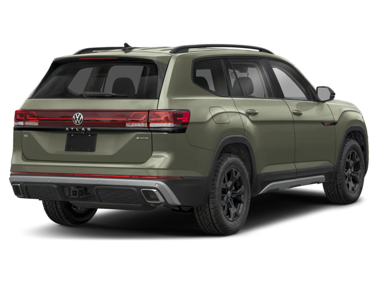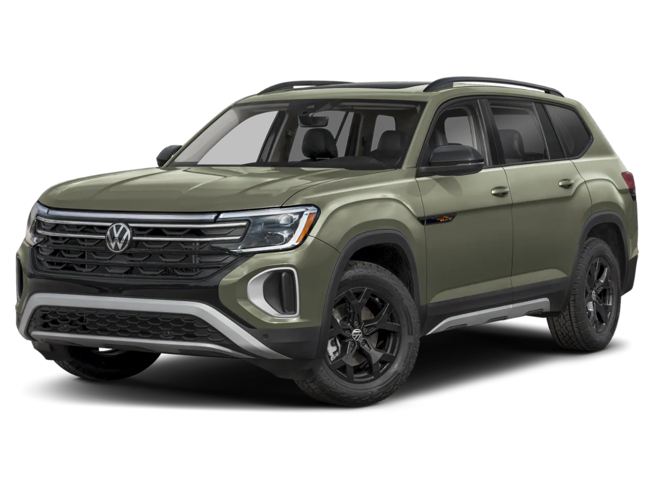 2nd-Row Dual Captain's Chairs, 3rd row seats: split-bench, 4-Wheel Disc Brakes, 4-Wheel Independent Suspension, 6 Speakers, ABS brakes, Air Conditioning, Alloy wheels, AM/FM radio: SiriusXM with 360L, Auto High-beam Headlights, Auto-dimming Rear-View mirror, Automatic temperature control, Brake assist, Bumpers: body-color, Compass, Delay-off headlights, Driver door bin, Driver vanity mirror, Dual front impact airbags, Dual front side impact airbags, Electronic Stability Control, Emergency communication system: VW Car-Net Safe & Secure 5-year, Exterior Parking Camera Rear, Four wheel independent suspension, Front anti-roll bar, Front Bucket Seats, Front Center Armrest, Front dual zone A/C, Front fog lights, Front reading lights, Fully automatic headlights, Garage door transmitter: Homelink, Heated and Actively Ventilated Front Bucket Seats, Heated door mirrors, Heated front seats, Heated steering wheel, Illuminated entry, Low tire pressure warning, Occupant sensing airbag, Outside temperature display, Overhead airbag, Overhead console, Panic alarm, Passenger door bin, Passenger vanity mirror, Perforated V-Tex Leatherette Seating Surfaces, Power door mirrors, Power driver seat, Power Liftgate, Power moonroof: Panoramic, Power steering, Power windows, Radio data system, Radio: MIB3 Composition Media, Rain sensing wipers, Rear air conditioning, Rear anti-roll bar, Rear reading lights, Rear seat center armrest, Rear window defroster, Rear window wiper, Remote keyless entry, Security system, Speed control, Speed-sensing steering, Split folding rear seat, Spoiler, Steering wheel mounted audio controls, Tachometer, Telescoping steering wheel, Tilt steering wheel, Traction control, Trip computer, Turn signal indicator mirrors, Variably intermittent wipers, Ventilated front seats, VW Care, Wheels: 18" Black Painted 5-Spoke Alloy. Recent Arrival! Avocado Green Pearl 2026 Volkswagen Atlas 2.0T Peak Edition AWD 8-Speed Automatic with Tiptronic 2.0L TSI