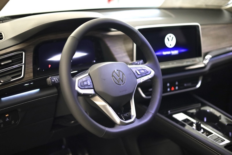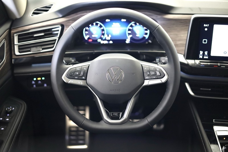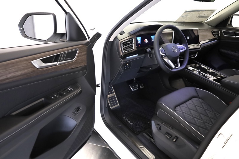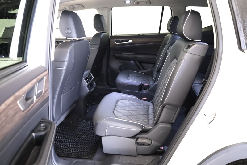 10 Speakers, 3rd row seats: split-bench, 4-Wheel Disc Brakes, ABS brakes, Air Conditioning, Alloy wheels, AM/FM radio: SiriusXM with 360L, Auto High-beam Headlights, Auto-dimming Rear-View mirror, Automatic temperature control, Brake assist, Bumpers: body-color, Compass, Delay-off headlights, Driver door bin, Driver vanity mirror, Dual front impact airbags, Dual front side impact airbags, Electronic Stability Control, Emergency communication system: VW Car-Net Safe & Secure 5-year, Exterior Parking Camera Rear, Four wheel independent suspension, Front anti-roll bar, Front Bucket Seats, Front Center Armrest, Front dual zone A/C, Front fog lights, Front reading lights, Fully automatic headlights, harman/kardon® Speakers, Heads-Up Display, Heated & Actively Ventilated Front Bucket Seats, Heated door mirrors, Heated front seats, Heated rear seats, Heated steering wheel, Illuminated entry, Leather steering wheel, Low tire pressure warning, Memory seat, Navigation System, Occupant sensing airbag, Outside temperature display, Overhead airbag, Overhead console, Panic alarm, Passenger door bin, Passenger vanity mirror, Perforated Vienna Leather Seating Surfaces, Power door mirrors, Power driver seat, Power Liftgate, Power moonroof: Panoramic, Power passenger seat, Power steering, Power windows, Radio data system, Radio: MIB3 Discover Pro w/Navigation, Rain sensing wipers, Rear air conditioning, Rear anti-roll bar, Rear audio controls, Rear reading lights, Rear seat center armrest, Rear window defroster, Rear window wiper, Remote keyless entry, Security system, Speed control, Speed-sensing steering, Split folding rear seat, Spoiler, Sport steering wheel, Steering wheel mounted audio controls, Tachometer, Telescoping steering wheel, Tilt steering wheel, Traction control, Trip computer, Turn signal indicator mirrors, Variably intermittent wipers, Ventilated front seats, VW Care, Wheels: 21" 2-Tone Machined Alloy. opal white pearl 2026 Volkswagen Atlas 2.0T SEL Premium R-Line AWD 8-Speed Automatic with Tiptronic 2.0L TSI