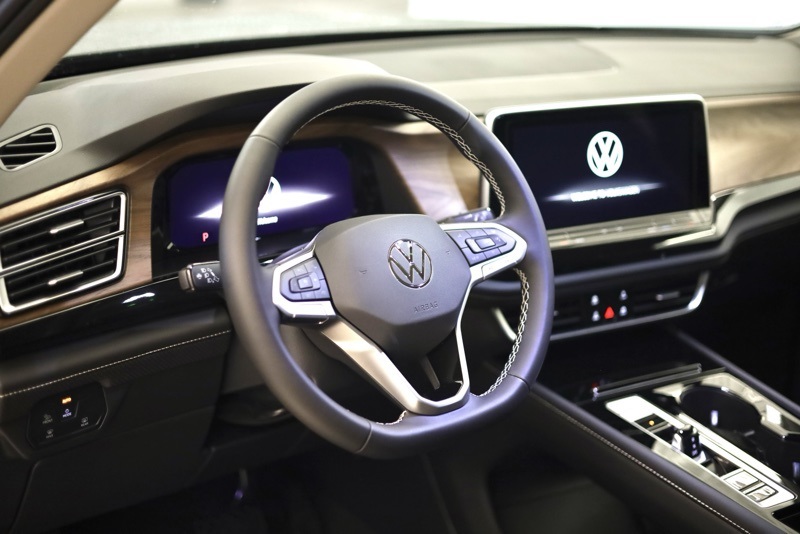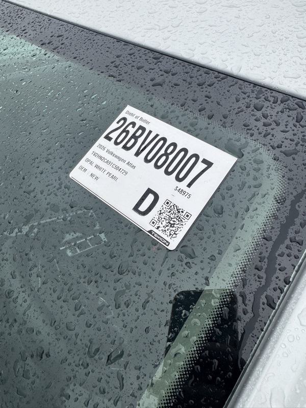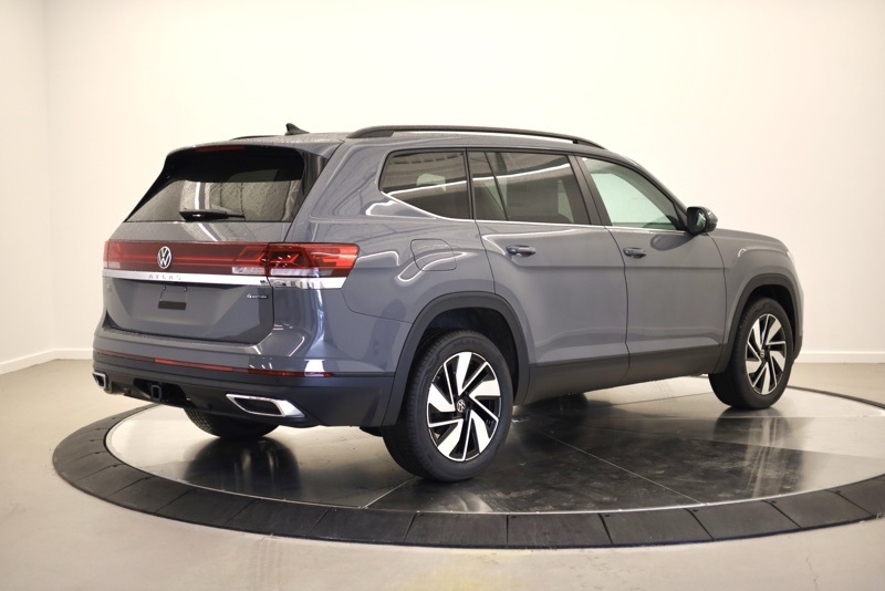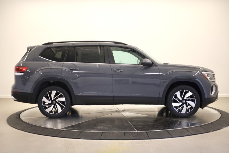3rd row seats: split-bench, 4-Wheel Disc Brakes, 6 Speakers, ABS brakes, Air Conditioning, Alloy wheels, AM/FM radio: SiriusXM with 360L, Auto High-beam Headlights, Auto-dimming Rear-View mirror, Automatic temperature control, Brake assist, Bumpers: body-color, Compass, Delay-off headlights, Driver door bin, Driver vanity mirror, Dual front impact airbags, Dual front side impact airbags, Electronic Stability Control, Exterior Parking Camera Rear, Four wheel independent suspension, Front anti-roll bar, Front Bucket Seats, Front Center Armrest, Front dual zone A/C, Front fog lights, Front reading lights, Fully automatic headlights, Heated & Actively Ventilated Front Bucket Seats, Heated door mirrors, Heated front seats, Heated steering wheel, Illuminated entry, Low tire pressure warning, Occupant sensing airbag, Outside temperature display, Overhead airbag, Overhead console, Panic alarm, Panoramic Sunroof Package, Passenger door bin, Passenger vanity mirror, Perforated V-Tex Leatherette Seating Surfaces, Power door mirrors, Power driver seat, Power Liftgate, Power steering, Power Tilting & Sliding Panoramic Sunroof, Power windows, Radio data system, Radio: MIB3 Composition Media, Rain sensing wipers, Rear air conditioning, Rear anti-roll bar, Rear reading lights, Rear seat center armrest, Rear window defroster, Rear window wiper, Remote keyless entry, Security system, Speed control, Speed-sensing steering, Split folding rear seat, Spoiler, Steering wheel mounted audio controls, Tachometer, Telescoping steering wheel, Tilt steering wheel, Traction control, Trip computer, Turn signal indicator mirrors, Variably intermittent wipers, Ventilated front seats, VW Care, Wheels: 20" 2-Tone Machined Alloy. pure gray 2026 Volkswagen Atlas 2.0T SE w/Technology AWD 8-Speed Automatic with Tiptronic 2.0L TSI