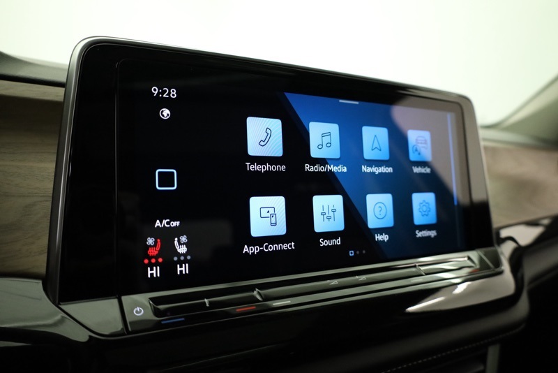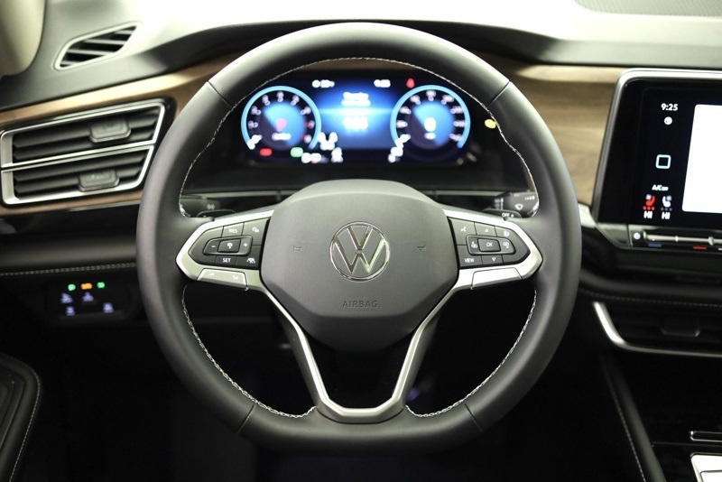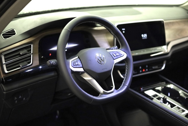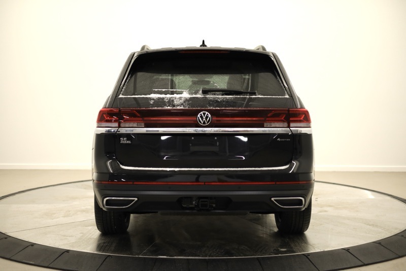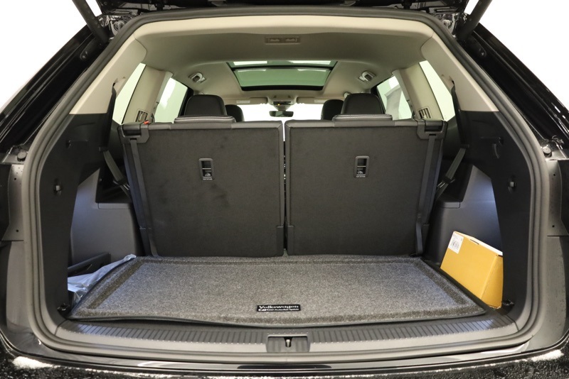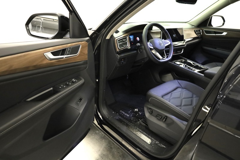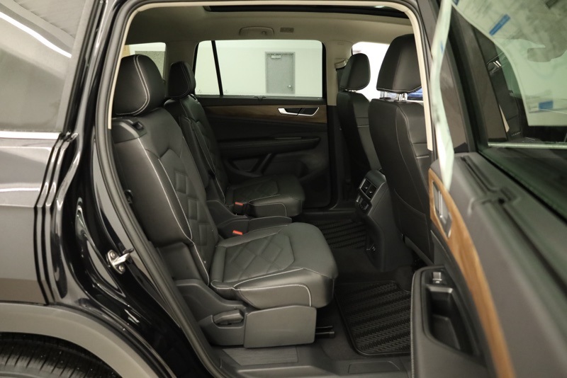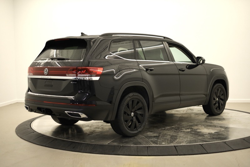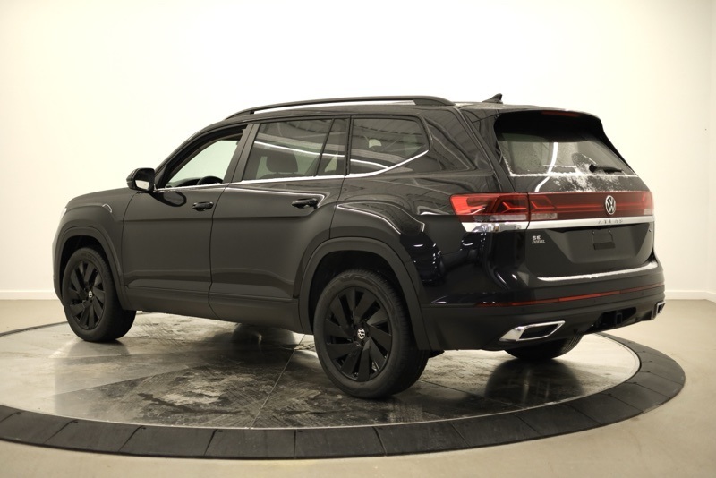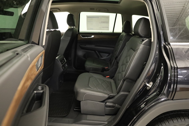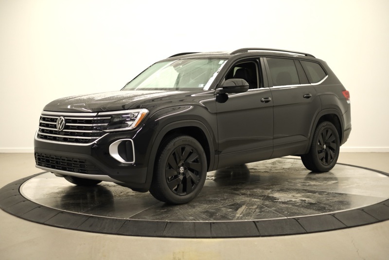 2nd-Row Dual Captain's Chairs, 3rd row seats: split-bench, 4-Wheel Disc Brakes, 4-Wheel Independent Suspension, 6 Speakers, ABS brakes, Air Conditioning, Alloy wheels, AM/FM radio: SiriusXM with 360L, Auto High-beam Headlights, Auto-dimming Rear-View mirror, Automatic temperature control, Black Wheel Package, Brake assist, Bumpers: body-color, Compass, Delay-off headlights, Driver door bin, Driver vanity mirror, Dual front impact airbags, Dual front side impact airbags, Electronic Stability Control, Emergency communication system: VW Car-Net Safe & Secure 5-year, Exterior Parking Camera Rear, Four wheel independent suspension, Front anti-roll bar, Front Bucket Seats, Front Center Armrest, Front dual zone A/C, Front fog lights, Front reading lights, Fully automatic headlights, Garage door transmitter: HomeLink, Heated & Actively Ventilated Front Bucket Seats, Heated door mirrors, Heated front seats, Heated steering wheel, Illuminated entry, Low tire pressure warning, Occupant sensing airbag, Outside temperature display, Overhead airbag, Overhead console, Panic alarm, Panoramic Sunroof Package, Passenger door bin, Passenger vanity mirror, Perforated V-Tex Leatherette Seating Surfaces, Power door mirrors, Power driver seat, Power Liftgate, Power steering, Power Tilting & Sliding Panoramic Sunroof, Power windows, Radio data system, Radio: MIB3 Composition Media, Rain sensing wipers, Rear air conditioning, Rear anti-roll bar, Rear reading lights, Rear seat center armrest, Rear window defroster, Rear window wiper, Remote keyless entry, Security system, Speed control, Speed-sensing steering, Split folding rear seat, Spoiler, Steering wheel mounted audio controls, Tachometer, Telescoping steering wheel, Tilt steering wheel, Traction control, Trip computer, Turn signal indicator mirrors, Variably intermittent wipers, Ventilated front seats, VW Care, Wheels: 20" Multi-Spoke Black Painted Alloy. deep black pearl 2026 Volkswagen Atlas 2.0T SE w/Technology AWD 8-Speed Automatic with Tiptronic 2.0L TSI