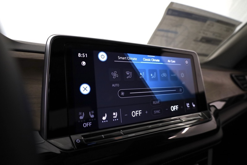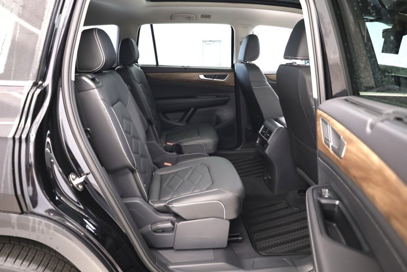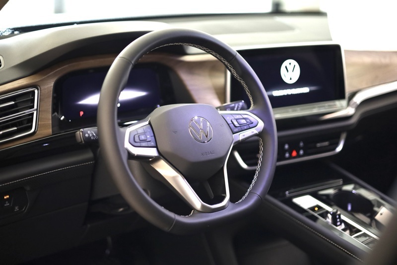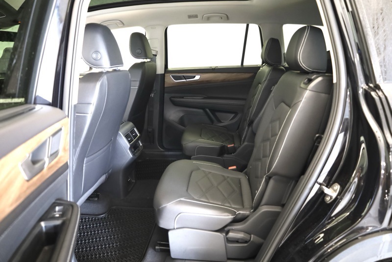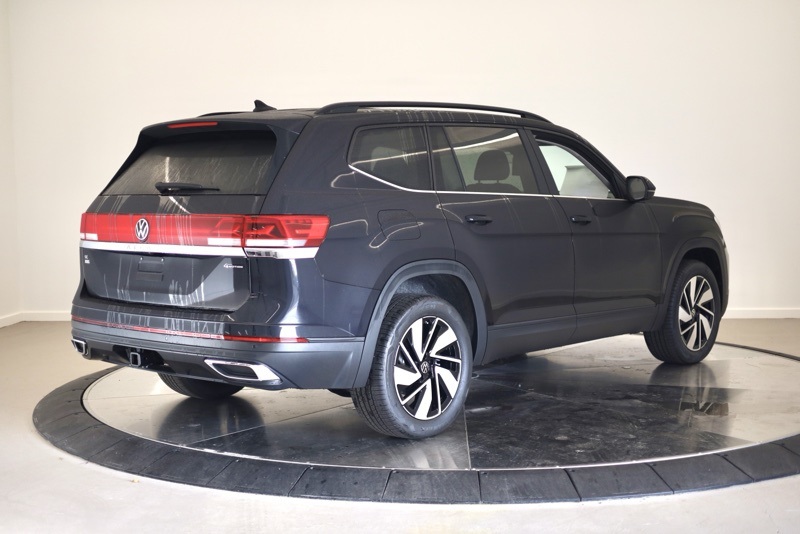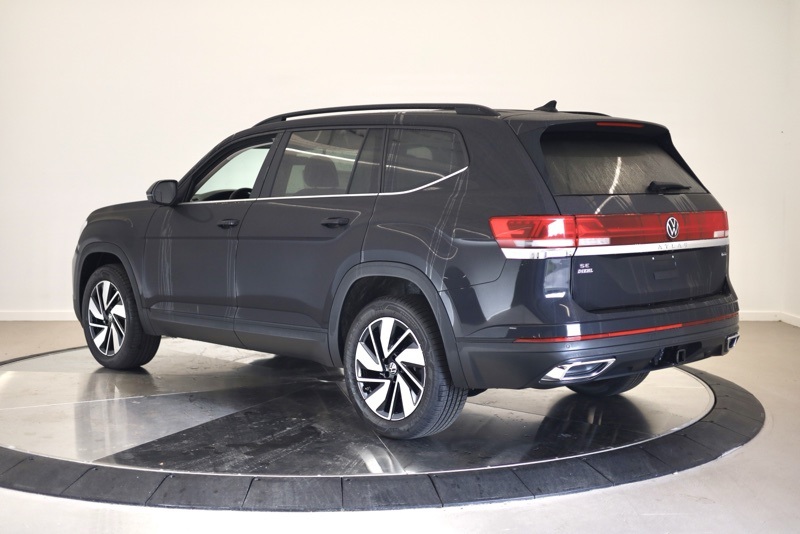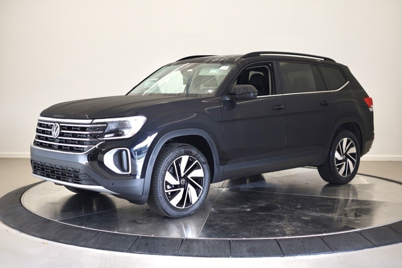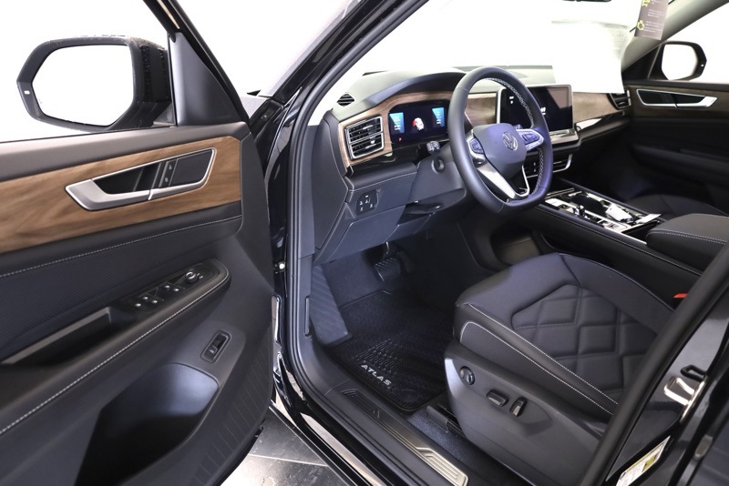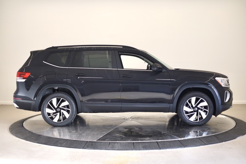 2nd-Row Dual Captain's Chairs, 3rd row seats: split-bench, 4-Wheel Disc Brakes, 6 Speakers, ABS brakes, Air Conditioning, Alloy wheels, AM/FM radio: SiriusXM with 360L, Auto High-beam Headlights, Auto-dimming Rear-View mirror, Automatic temperature control, Brake assist, Bumpers: body-color, Compass, Delay-off headlights, Driver door bin, Driver vanity mirror, Dual front impact airbags, Dual front side impact airbags, Electronic Stability Control, Exterior Parking Camera Rear, Four wheel independent suspension, Front anti-roll bar, Front Bucket Seats, Front Center Armrest, Front dual zone A/C, Front fog lights, Front reading lights, Fully automatic headlights, Heated & Actively Ventilated Front Bucket Seats, Heated door mirrors, Heated front seats, Heated steering wheel, Illuminated entry, Low tire pressure warning, Occupant sensing airbag, Outside temperature display, Overhead airbag, Overhead console, Panic alarm, Passenger door bin, Passenger vanity mirror, Perforated V-Tex Leatherette Seating Surfaces, Power door mirrors, Power driver seat, Power Liftgate, Power steering, Power windows, Radio data system, Radio: MIB3 Composition Media, Rain sensing wipers, Rear air conditioning, Rear anti-roll bar, Rear reading lights, Rear seat center armrest, Rear window defroster, Rear window wiper, Remote keyless entry, Security system, Speed control, Speed-sensing steering, Split folding rear seat, Spoiler, Steering wheel mounted audio controls, Tachometer, Telescoping steering wheel, Tilt steering wheel, Traction control, Trip computer, Turn signal indicator mirrors, Variably intermittent wipers, Ventilated front seats, VW Care, Wheels: 20" 2-Tone Machined Alloy. deep black pearl 2026 Volkswagen Atlas 2.0T SE w/Technology AWD 8-Speed Automatic with Tiptronic 2.0L TSI