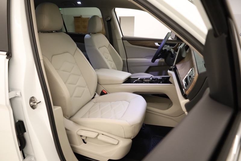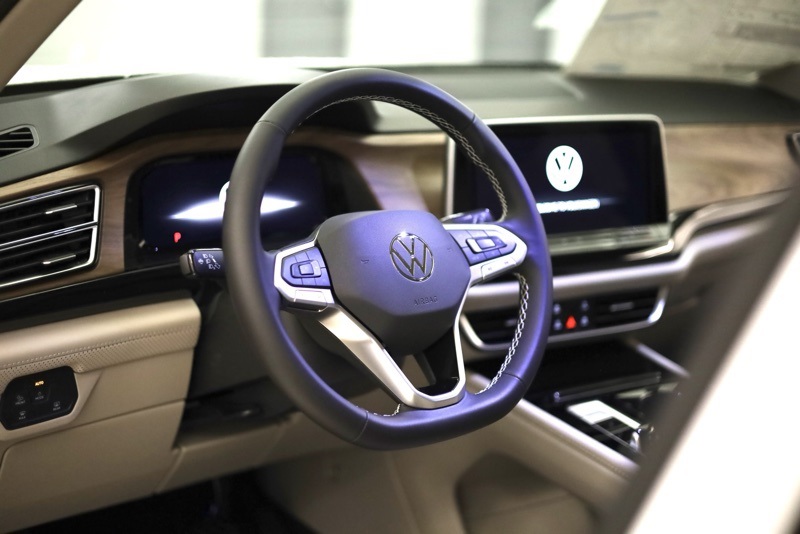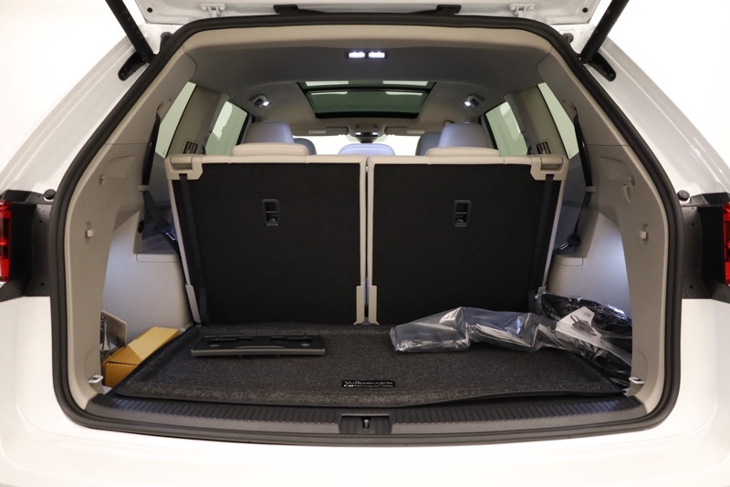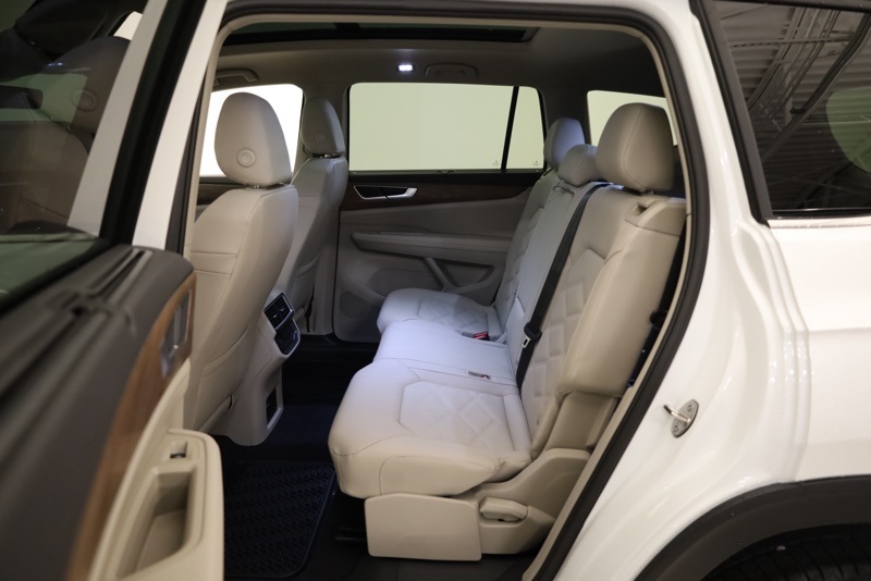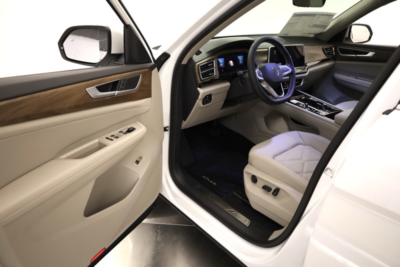 3rd row seats: split-bench, 4-Wheel Disc Brakes, 6 Speakers, ABS brakes, Air Conditioning, Alloy wheels, AM/FM radio: SiriusXM with 360L, Auto High-beam Headlights, Auto-dimming Rear-View mirror, Automatic temperature control, Brake assist, Bumpers: body-color, Compass, Delay-off headlights, Driver door bin, Driver vanity mirror, Dual front impact airbags, Dual front side impact airbags, Electronic Stability Control, Exterior Parking Camera Rear, Four wheel independent suspension, Front anti-roll bar, Front Bucket Seats, Front Center Armrest, Front dual zone A/C, Front fog lights, Front reading lights, Fully automatic headlights, Heated & Actively Ventilated Front Bucket Seats, Heated door mirrors, Heated front seats, Heated steering wheel, Illuminated entry, Low tire pressure warning, Occupant sensing airbag, Outside temperature display, Overhead airbag, Overhead console, Panic alarm, Panoramic Sunroof Package, Passenger door bin, Passenger vanity mirror, Perforated V-Tex Leatherette Seating Surfaces, Power door mirrors, Power driver seat, Power Liftgate, Power steering, Power Tilting & Sliding Panoramic Sunroof, Power windows, Radio data system, Radio: MIB3 Composition Media, Rain sensing wipers, Rear air conditioning, Rear anti-roll bar, Rear reading lights, Rear seat center armrest, Rear window defroster, Rear window wiper, Remote keyless entry, Security system, Speed control, Speed-sensing steering, Split folding rear seat, Spoiler, Steering wheel mounted audio controls, Tachometer, Telescoping steering wheel, Tilt steering wheel, Traction control, Trip computer, Turn signal indicator mirrors, Variably intermittent wipers, Ventilated front seats, VW Care, Wheels: 20" 2-Tone Machined Alloy. pal White Pearl 2026 Volkswagen Atlas 2.0T SE w/Technology AWD 8-Speed Automatic with Tiptronic 2.0L TSI