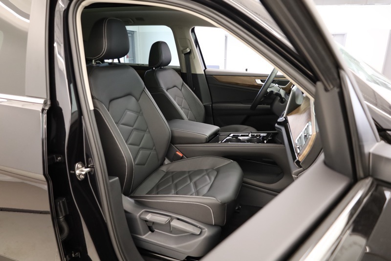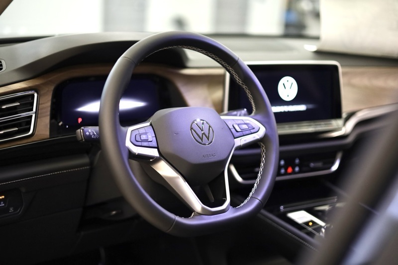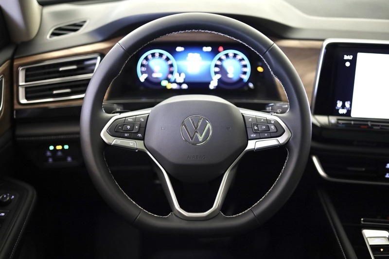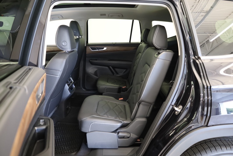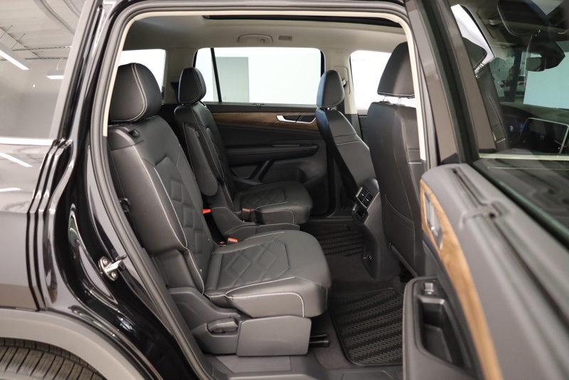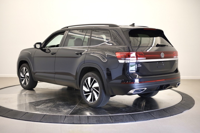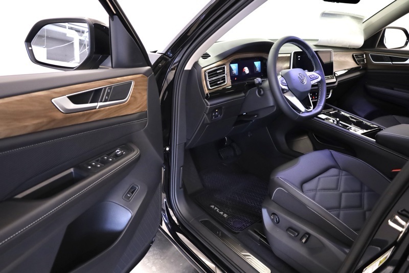 2nd-Row Dual Captain's Chairs, 3rd row seats: split-bench, 4-Wheel Disc Brakes, 6 Speakers, ABS brakes, Air Conditioning, Alloy wheels, AM/FM radio: SiriusXM with 360L, Auto High-beam Headlights, Auto-dimming Rear-View mirror, Automatic temperature control, Brake assist, Bumpers: body-color, Compass, Delay-off headlights, Driver door bin, Driver vanity mirror, Dual front impact airbags, Dual front side impact airbags, Electronic Stability Control, Exterior Parking Camera Rear, Four wheel independent suspension, Front anti-roll bar, Front Bucket Seats, Front Center Armrest, Front dual zone A/C, Front fog lights, Front reading lights, Fully automatic headlights, Heated & Actively Ventilated Front Bucket Seats, Heated door mirrors, Heated front seats, Heated steering wheel, Illuminated entry, Low tire pressure warning, Occupant sensing airbag, Outside temperature display, Overhead airbag, Overhead console, Panic alarm, Panoramic Sunroof Package, Passenger door bin, Passenger vanity mirror, Perforated V-Tex Leatherette Seating Surfaces, Power door mirrors, Power driver seat, Power Liftgate, Power steering, Power Tilting & Sliding Panoramic Sunroof, Power windows, Radio data system, Radio: MIB3 Composition Media, Rain sensing wipers, Rear air conditioning, Rear anti-roll bar, Rear reading lights, Rear seat center armrest, Rear window defroster, Rear window wiper, Remote keyless entry, Security system, Speed control, Speed-sensing steering, Split folding rear seat, Spoiler, Steering wheel mounted audio controls, Tachometer, Telescoping steering wheel, Tilt steering wheel, Traction control, Trip computer, Turn signal indicator mirrors, Variably intermittent wipers, Ventilated front seats, VW Care, Wheels: 20" 2-Tone Machined Alloy. deep black pearl 2026 Volkswagen Atlas 2.0T SE w/Technology AWD 8-Speed Automatic with Tiptronic 2.0L TSI