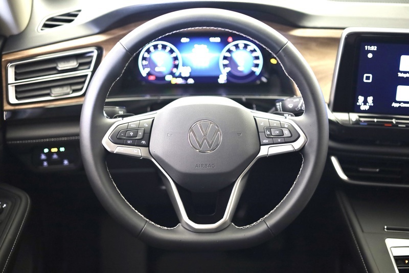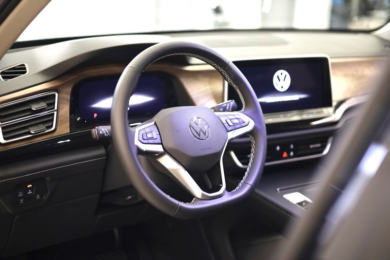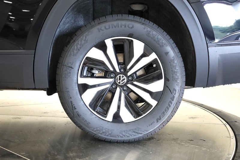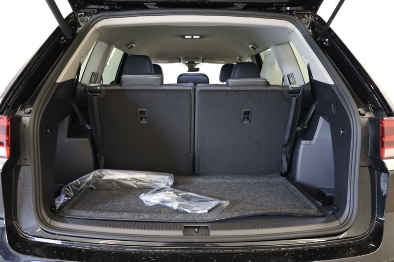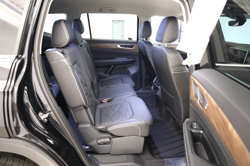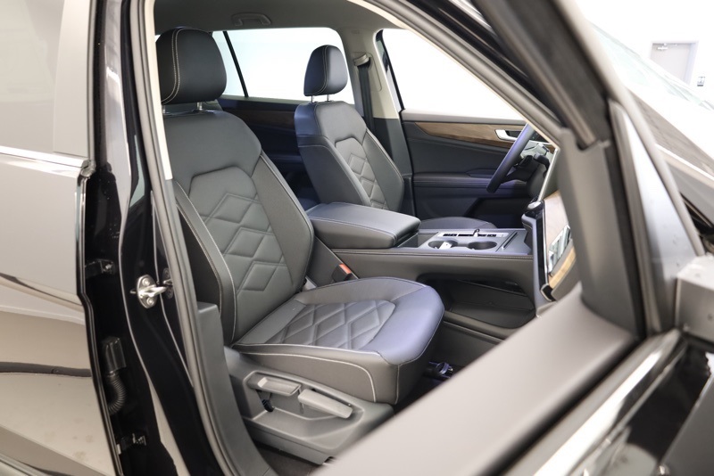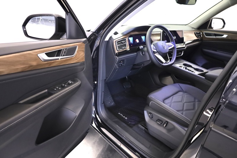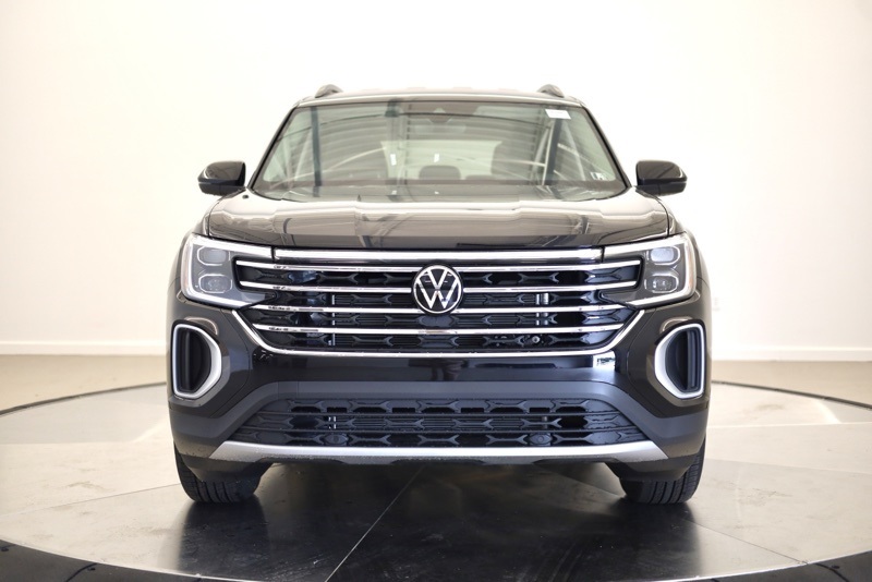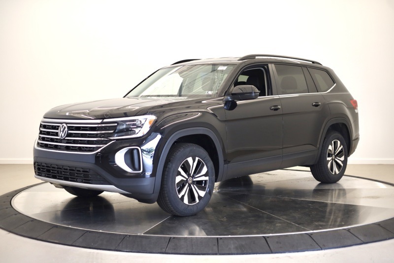 3rd row seats: split-bench, 4-Wheel Disc Brakes, 6 Speakers, ABS brakes, Active Cruise Control, Air Conditioning, Alloy wheels, AM/FM radio: SiriusXM with 360L, Auto High-beam Headlights, Auto-dimming Rear-View mirror, Automatic temperature control, Brake assist, Bumpers: body-color, Delay-off headlights, Driver door bin, Driver vanity mirror, Dual front impact airbags, Dual front side impact airbags, Electronic Stability Control, Emergency communication system: VW Car-Net Safe & Secure 5-year, Exterior Parking Camera Rear, Four wheel independent suspension, Front anti-roll bar, Front Bucket Seats, Front Center Armrest, Front dual zone A/C, Front fog lights, Front reading lights, Fully automatic headlights, Heated & Actively Ventilated Front Bucket Seats, Heated door mirrors, Heated front seats, Heated steering wheel, Illuminated entry, Low tire pressure warning, Occupant sensing airbag, Outside temperature display, Overhead airbag, Overhead console, Panic alarm, Passenger door bin, Passenger vanity mirror, Perforated V-Tex Leatherette Seating Surfaces, Power door mirrors, Power driver seat, Power steering, Power windows, Radio data system, Radio: MIB3 Composition Media, Rain sensing wipers, Rear air conditioning, Rear anti-roll bar, Rear reading lights, Rear seat center armrest, Rear window defroster, Rear window wiper, Remote keyless entry, Security system, Speed control, Speed-sensing steering, Split folding rear seat, Spoiler, Steering wheel mounted audio controls, Tachometer, Telescoping steering wheel, Tilt steering wheel, Traction control, Trip computer, Turn signal indicator mirrors, Variably intermittent wipers, Ventilated front seats, VW Care, Wheels: 18" 2-Tone Machined Alloy. deep black pearl 2026 Volkswagen Atlas 2.0T SE AWD 8-Speed Automatic with Tiptronic 2.0L TSI