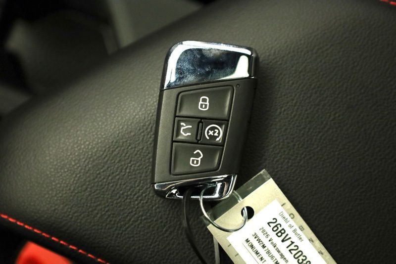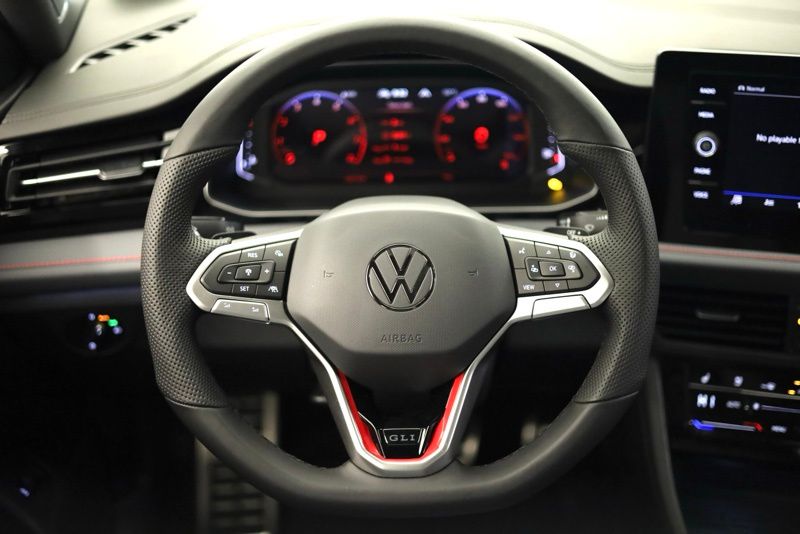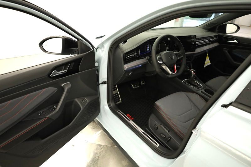 4-Wheel Disc Brakes, 8 Speakers, ABS brakes, Active Blind Spot Monitor, Air Conditioning, Alloy wheels, AM/FM radio: SiriusXM with 360L, Auto High-beam Headlights, Auto-dimming Rear-View mirror, Automatic temperature control, Brake assist, Bumpers: body-color, Deep Black Pearl Roof, Deep Black Pearl Side Mirror Caps, Delay-off headlights, Driver door bin, Driver vanity mirror, Dual front impact airbags, Dual front side impact airbags, Electronic Stability Control, Emergency communication system: VW Car-Net Safe & Secure 5-year, Exterior Parking Camera Rear, Four wheel independent suspension, Front anti-roll bar, Front Bucket Seats, Front Center Armrest, Front dual zone A/C, Front reading lights, Fully automatic headlights, GLI Black Package, Heated and Actively Ventilated Front Seats, Heated door mirrors, Heated front seats, Heated steering wheel, Illuminated entry, Leather Shift Knob, Leather steering wheel, Low tire pressure warning, Memory seat, Occupant sensing airbag, Outside temperature display, Overhead airbag, Overhead console, Panic alarm, Passenger door bin, Passenger vanity mirror, Perforated Vienna Leather Seating Surfaces, Power door mirrors, Power driver seat, Power moonroof, Power steering, Power windows, Radio data system, Radio: MIB3 Composition Media with Touchscreen, Rain sensing wipers, Rear anti-roll bar, Rear reading lights, Rear seat center armrest, Rear window defroster, Remote keyless entry, Security system, Speed control, Speed-sensing steering, Split folding rear seat, Sport steering wheel, Steering wheel mounted audio controls, Tachometer, Telescoping steering wheel, Tilt steering wheel, Traction control, Trip computer, Variably intermittent wipers, Ventilated front seats, VW Premium Sound System with Subwoofer, Wheels: 18" Black Painted Alloy, Wheels: 18" Two-Tone Machined Alloy. Monument Gray w/Dp Blk Rf 2026 Volkswagen Jetta GLI 2.0T Autobahn FWD 7-Speed DSG Automatic with Tiptronic 2.0L TSI DOHC