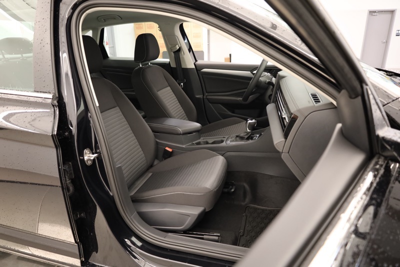 Titan Black Cloth, 4 Speakers, 4-Wheel Disc Brakes, ABS brakes, Active Blind Spot Monitor, Air Conditioning, Alloy wheels, Auto-dimming Rear-View mirror, Automatic temperature control, Brake assist, Bumpers: body-color, Cloth Seat Trim, Delay-off headlights, Driver door bin, Driver vanity mirror, Dual front impact airbags, Dual front side impact airbags, Electronic Stability Control, Emergency communication system: VW Car-Net Safe & Secure 5-year, Exterior Parking Camera Rear, Front anti-roll bar, Front Bucket Seats, Front Center Armrest, Front dual zone A/C, Front Seats, Front wheel independent suspension, Fully automatic headlights, Heated door mirrors, Illuminated entry, Leather Shift Knob, Leather steering wheel, Low tire pressure warning, Occupant sensing airbag, Outside temperature display, Overhead airbag, Overhead console, Panic alarm, Passenger door bin, Passenger vanity mirror, Power door mirrors, Power steering, Power windows, Radio data system, Rain sensing wipers, Rear anti-roll bar, Rear reading lights, Rear window defroster, Remote keyless entry, Speed control, Speed-sensing steering, Split folding rear seat, Steering wheel mounted audio controls, Tachometer, Telescoping steering wheel, Tilt steering wheel, Traction control, Trip computer, Variably intermittent wipers, Wheels: 16" 2-Tone Machined Alloy. Deep Black Pearl 2026 Volkswagen Jetta 1.5T S FWD 8-Speed Automatic with Tiptronic 1.5L I-4 DI DOHC Turbocharged