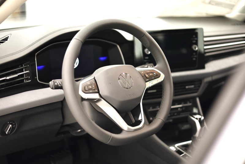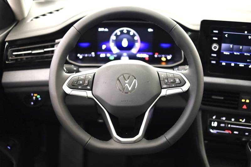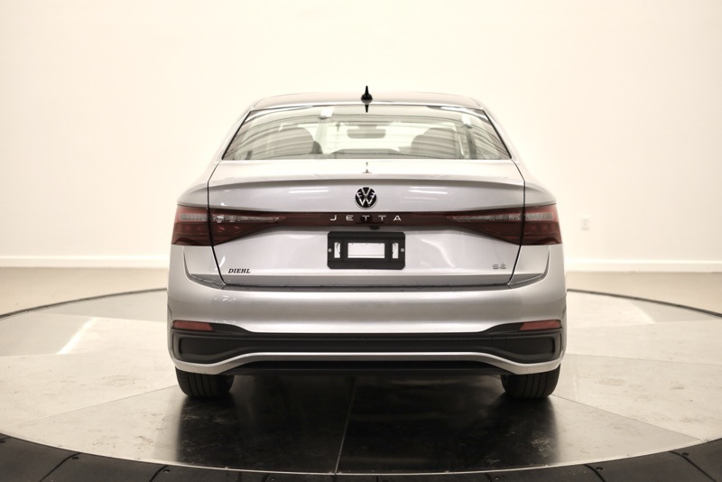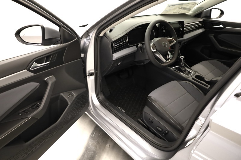Grigio/Titan Black w/CloudTex & V-Tex Leatherette Seat Trim, 4-Wheel Disc Brakes, 6 Speakers, ABS brakes, Active Blind Spot Monitor, Air Conditioning, Alloy wheels, AM/FM radio: SiriusXM with 360L, Auto-dimming Rear-View mirror, Automatic temperature control, Brake assist, Bumpers: body-color, Delay-off headlights, Driver door bin, Driver vanity mirror, Dual front impact airbags, Dual front side impact airbags, Electronic Stability Control, Emergency communication system: VW Car-Net Safe & Secure 5-year, Exterior Parking Camera Rear, Front anti-roll bar, Front Bucket Seats, Front Center Armrest, Front dual zone A/C, Front wheel independent suspension, Fully automatic headlights, Heated door mirrors, Heated Front Seats, Heated front seats, Illuminated entry, Leather Shift Knob, Leather steering wheel, Low tire pressure warning, Occupant sensing airbag, Outside temperature display, Overhead airbag, Overhead console, Panic alarm, Passenger door bin, Passenger vanity mirror, Power door mirrors, Power driver seat, Power moonroof: Panoramic, Power steering, Power windows, Radio data system, Rain sensing wipers, Rear anti-roll bar, Rear reading lights, Rear seat center armrest, Rear window defroster, Remote keyless entry, Speed control, Speed-sensing steering, Split folding rear seat, Steering wheel mounted audio controls, Tachometer, Telescoping steering wheel, Tilt steering wheel, Traction control, Trip computer, Variably intermittent wipers, VW Care, Wheels: 17" Twin 5-Spoke 2-Tone Machined Alloy. Pyrite Silver Metallic 2026 Volkswagen Jetta 1.5T SE FWD 8-Speed Automatic with Tiptronic 1.5L I-4 DI DOHC Turbocharged