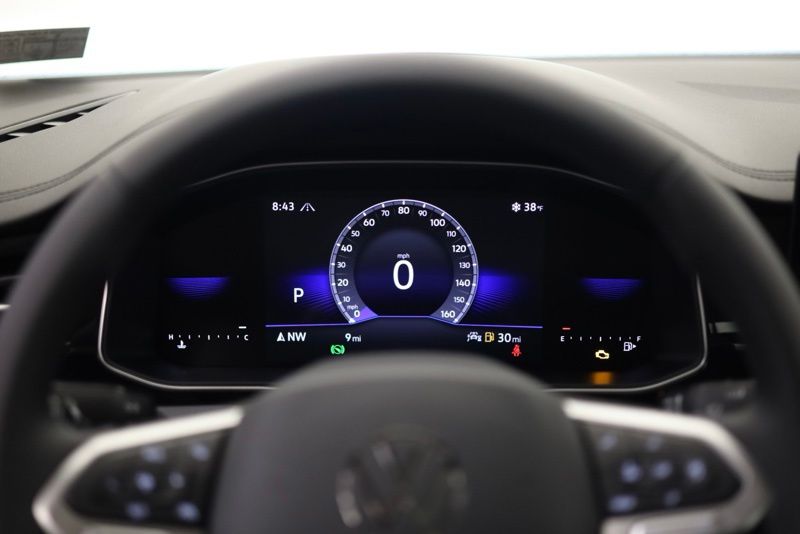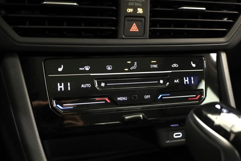 Safety features include Active Blind Spot Monitor, dual front impact airbags, dual front side impact airbags, an overhead airbag, occupant sensing airbag, low tire pressure warning, panic alarm, and VW Car Net Safe and Secure with 5 year emergency communication.