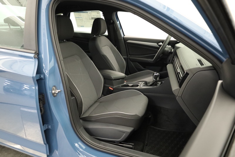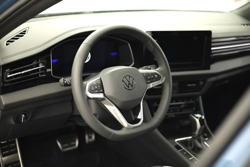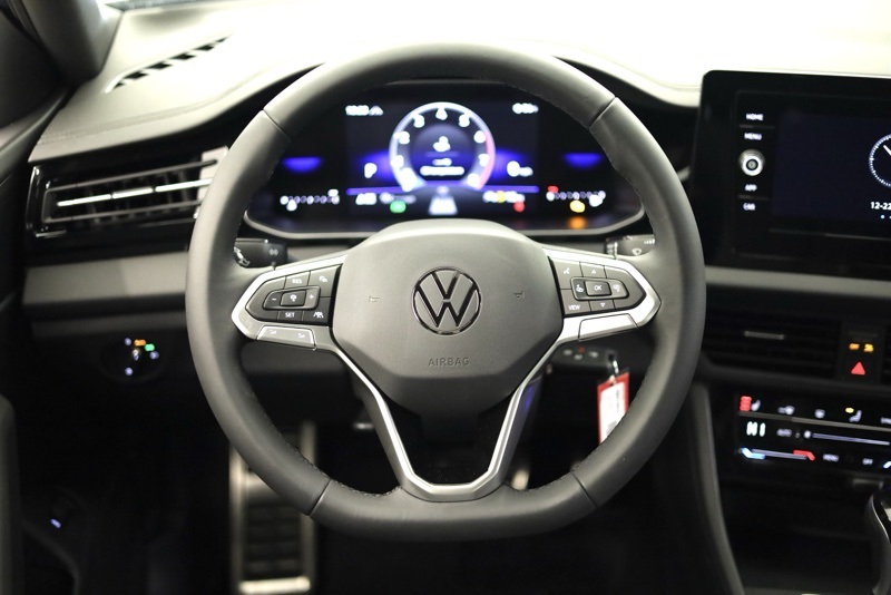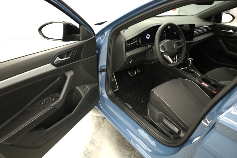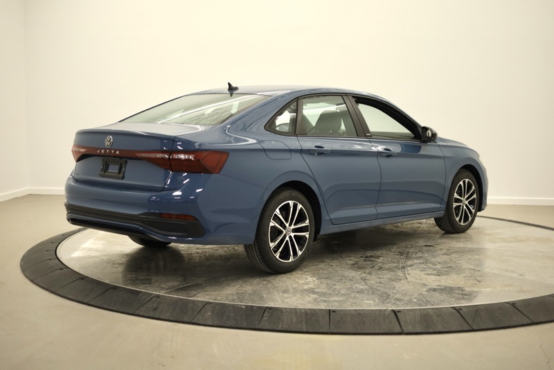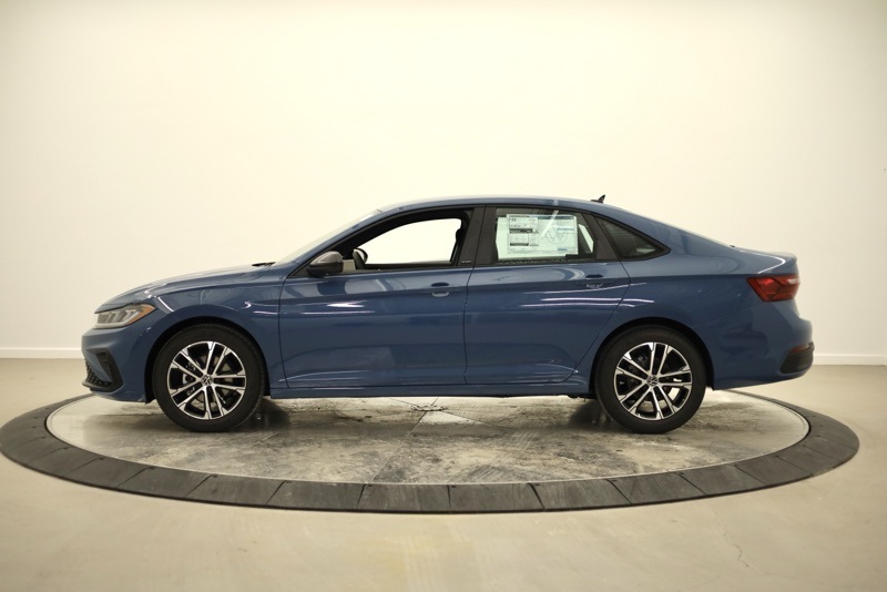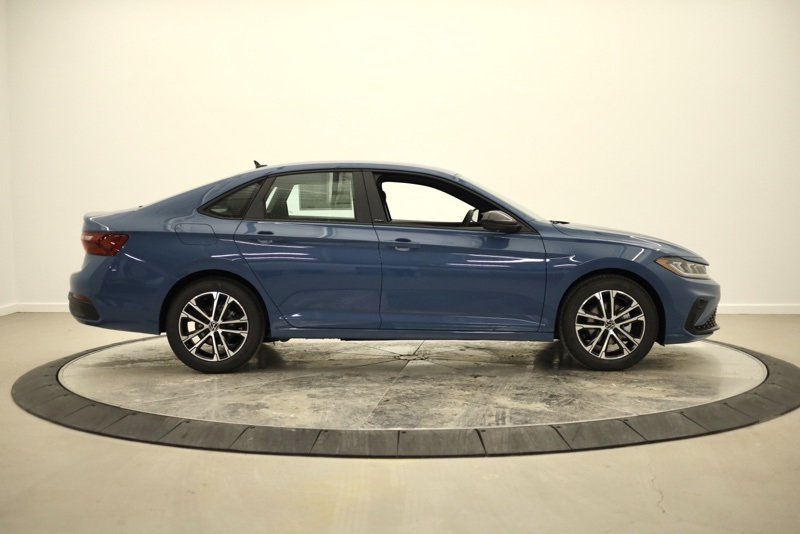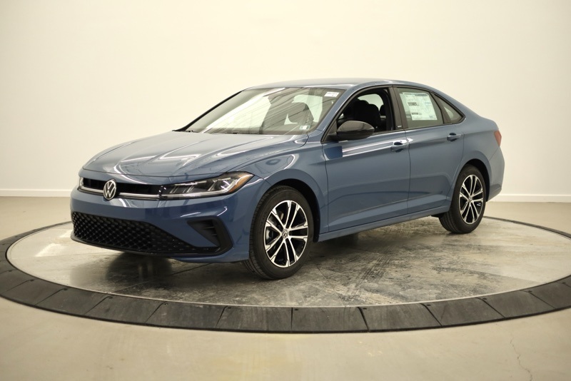 Titan Black w/Cloth Seat Trim, 4 Speakers, 4-Wheel Disc Brakes, ABS brakes, Active Blind Spot Monitor, Air Conditioning, Alloy wheels, Auto-dimming Rear-View mirror, Automatic temperature control, Brake assist, Bumpers: body-color, Cloth Seat Trim, Delay-off headlights, Driver door bin, Driver vanity mirror, Dual front impact airbags, Dual front side impact airbags, Electronic Stability Control, Emergency communication system: VW Car-Net Safe & Secure 5-year, Exterior Parking Camera Rear, Front anti-roll bar, Front Bucket Seats, Front Center Armrest, Front dual zone A/C, Front wheel independent suspension, Fully automatic headlights, Heated door mirrors, Heated Front Seats, Heated front seats, Illuminated entry, Leather Shift Knob, Leather steering wheel, Low tire pressure warning, Occupant sensing airbag, Outside temperature display, Overhead airbag, Overhead console, Panic alarm, Passenger door bin, Passenger vanity mirror, Power door mirrors, Power steering, Power windows, Radio data system, Radio: MIB3 Composition Color with 8" Touchscreen, Rain sensing wipers, Rear anti-roll bar, Rear reading lights, Rear seat center armrest, Rear window defroster, Remote keyless entry, Speed control, Speed-sensing steering, Split folding rear seat, Steering wheel mounted audio controls, Tachometer, Telescoping steering wheel, Tilt steering wheel, Traction control, Trip computer, Variably intermittent wipers, VW Care, Wheels: 17" 2-Tone Machined Alloy. Recent Arrival! Monterey Blue Pearl 2026 Volkswagen Jetta 1.5T Sport FWD 8-Speed Automatic with Tiptronic 1.5L I-4 DI DOHC Turbocharged