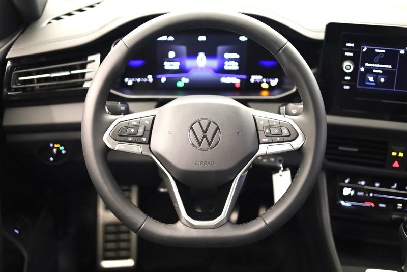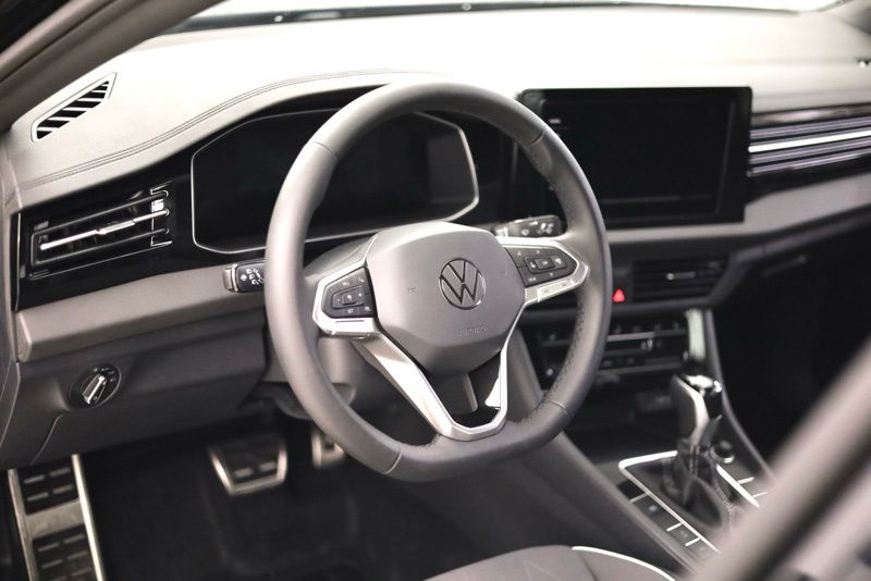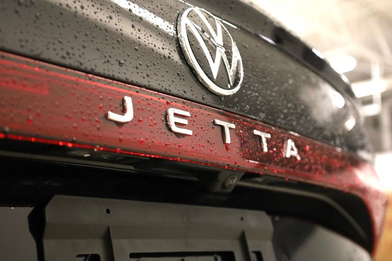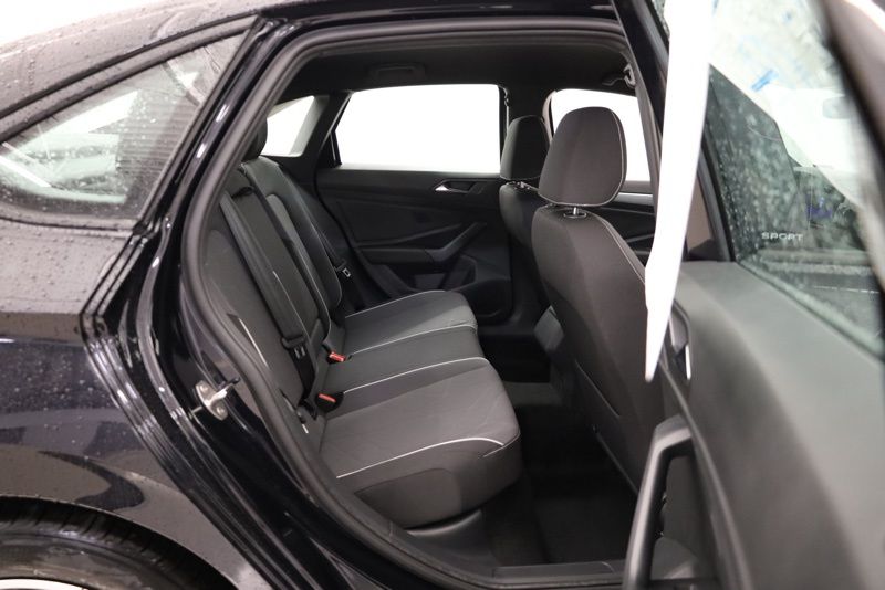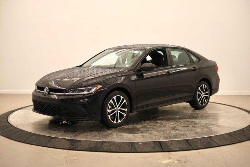 Titan Black w/Cloth Seat Trim, 4 Speakers, 4-Wheel Disc Brakes, ABS brakes, Active Blind Spot Monitor, Air Conditioning, Alloy wheels, Auto-dimming Rear-View mirror, Automatic temperature control, Brake assist, Bumpers: body-color, Cloth Seat Trim, Delay-off headlights, Driver door bin, Driver vanity mirror, Dual front impact airbags, Dual front side impact airbags, Electronic Stability Control, Emergency communication system: VW Car-Net Safe & Secure 5-year, Extended Range Remote Engine Start, Exterior Parking Camera Rear, Front anti-roll bar, Front Bucket Seats, Front Center Armrest, Front dual zone A/C, Front wheel independent suspension, Fully automatic headlights, Heated door mirrors, Heated Front Seats, Heated front seats, Illuminated entry, Leather Shift Knob, Leather steering wheel, Low tire pressure warning, Occupant sensing airbag, Outside temperature display, Overhead airbag, Overhead console, Panic alarm, Passenger door bin, Passenger vanity mirror, Power door mirrors, Power steering, Power windows, Radio data system, Radio: MIB3 Composition Color with 8" Touchscreen, Rain sensing wipers, Rear anti-roll bar, Rear reading lights, Rear seat center armrest, Rear window defroster, Remote keyless entry, Speed control, Speed-sensing steering, Split folding rear seat, Steering wheel mounted audio controls, Tachometer, Telescoping steering wheel, Tilt steering wheel, Traction control, Trip computer, Variably intermittent wipers, VW Care, Wheels: 17" 2-Tone Machined Alloy. Deep Black Pearl 2026 Volkswagen Jetta 1.5T Sport FWD 8-Speed Automatic with Tiptronic 1.5L I-4 DI DOHC Turbocharged