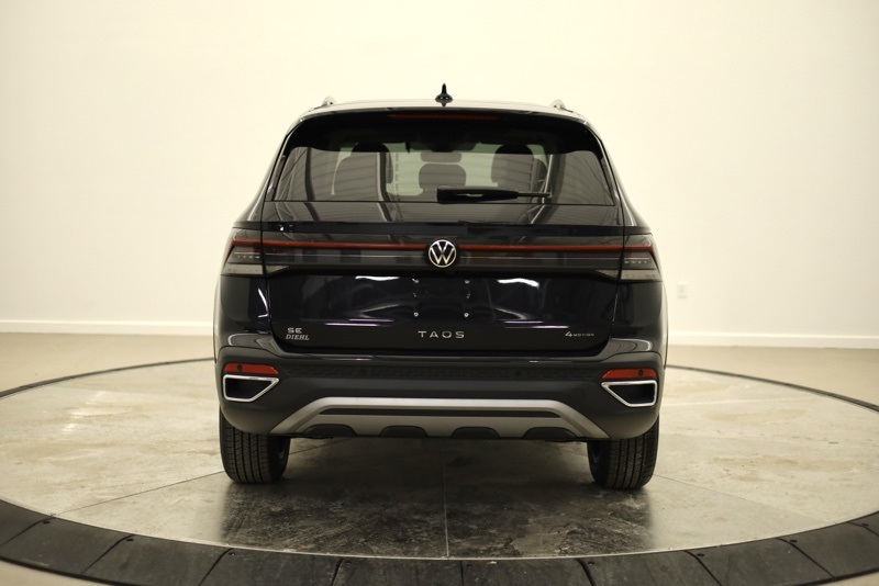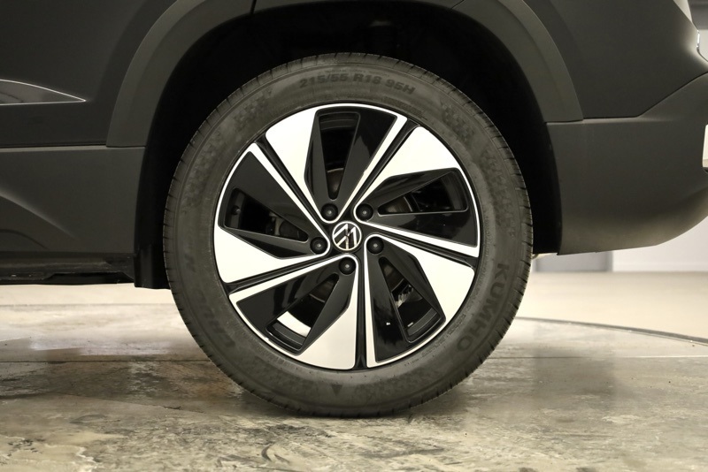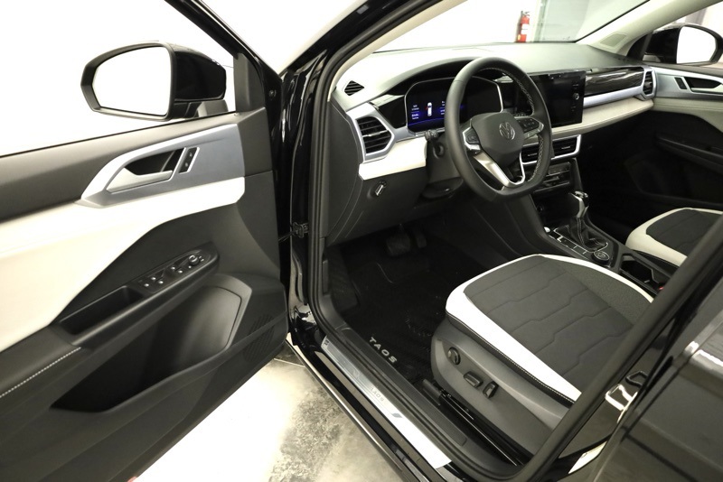 4-Wheel Disc Brakes, 6 Speakers, ABS brakes, Active Blind Spot Monitor, Air Conditioning, Alloy wheels, AM/FM radio: SiriusXM with 360L, Auto High-beam Headlights, Automatic temperature control, Brake assist, Bumpers: body-color, Cloudtex and Cloth Seating Surfaces, Compass, Delay-off headlights, Driver door bin, Driver vanity mirror, Dual front impact airbags, Dual front side impact airbags, Electronic Stability Control, Emergency communication system: VW Car-Net Safe & Secure 5-year, Exterior Parking Camera Rear, Four wheel independent suspension, Front anti-roll bar, Front Bucket Seats, Front Center Armrest, Front dual zone A/C, Front reading lights, Front Strut Rear Multi-Link Suspension, Fully automatic headlights, Heated door mirrors, Heated Front Bucket Seats, Heated front seats, Heated steering wheel, Illuminated entry, Leather Shift Knob, Low tire pressure warning, Occupant sensing airbag, Outside temperature display, Overhead airbag, Overhead console, Panic alarm, Panoramic Sunroof Package, Passenger door bin, Passenger vanity mirror, Power door mirrors, Power driver seat, Power steering, Power windows, Radio data system, Radio: MIB3 Composition Media AM/FM/HD, Rain sensing wipers, Rear anti-roll bar, Rear seat center armrest, Rear window defroster, Rear window wiper, Remote keyless entry, Security system, Speed control, Speed-sensing steering, Split folding rear seat, Spoiler, Steering wheel mounted audio controls, Tachometer, Telescoping steering wheel, Tilt steering wheel, Traction control, Trip computer, Variably intermittent wipers, VW Care, Wheels: 18" 2-Tone Machined Alloy. Deep Black Pearl 2026 Volkswagen Taos 1.5T SE AWD 8-Speed Automatic with Tiptronic 1.5L I4 Turbocharged DOHC 16V LEV3-SULEV30 174hp