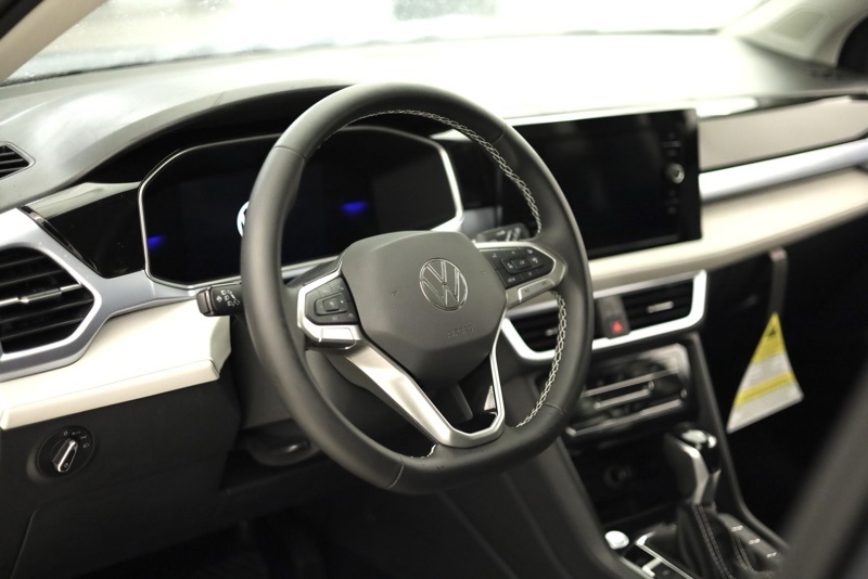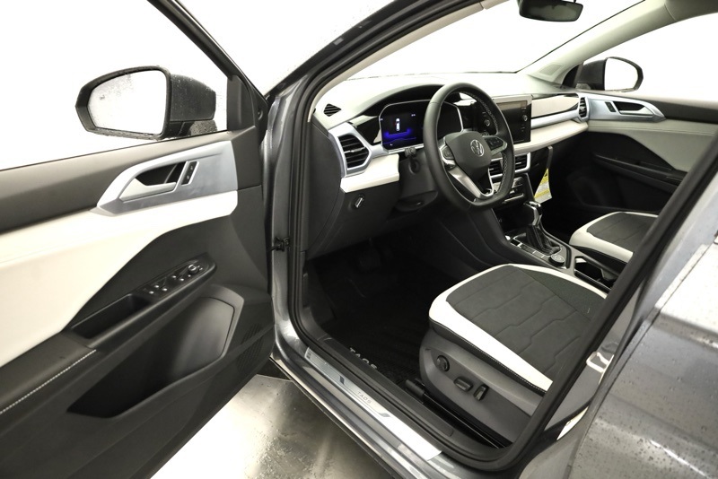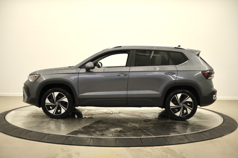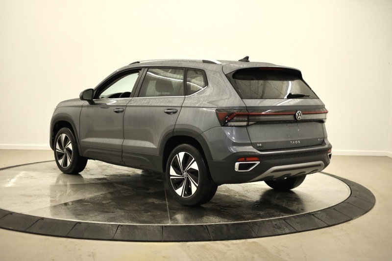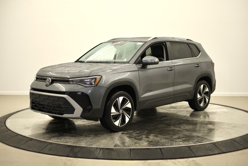 4-Wheel Disc Brakes, 6 Speakers, ABS brakes, Active Blind Spot Monitor, Air Conditioning, Alloy wheels, AM/FM radio: SiriusXM with 360L, Auto High-beam Headlights, Automatic temperature control, Brake assist, Bumpers: body-color, Cloudtex and Cloth Seating Surfaces, Compass, Delay-off headlights, Driver door bin, Driver vanity mirror, Dual front impact airbags, Dual front side impact airbags, Electronic Stability Control, Emergency communication system: VW Car-Net Safe & Secure 5-year, Exterior Parking Camera Rear, Four wheel independent suspension, Front anti-roll bar, Front Bucket Seats, Front Center Armrest, Front dual zone A/C, Front reading lights, Front Strut Rear Multi-Link Suspension, Fully automatic headlights, Heated door mirrors, Heated Front Bucket Seats, Heated front seats, Heated steering wheel, Illuminated entry, Leather Shift Knob, Low tire pressure warning, Occupant sensing airbag, Outside temperature display, Overhead airbag, Overhead console, Panic alarm, Panoramic Sunroof Package, Passenger door bin, Passenger vanity mirror, Power door mirrors, Power driver seat, Power steering, Power windows, Radio data system, Radio: MIB3 Composition Media AM/FM/HD, Rain sensing wipers, Rear anti-roll bar, Rear seat center armrest, Rear window defroster, Rear window wiper, Remote keyless entry, Security system, Speed control, Speed-sensing steering, Split folding rear seat, Spoiler, Steering wheel mounted audio controls, Tachometer, Telescoping steering wheel, Tilt steering wheel, Traction control, Trip computer, Variably intermittent wipers, VW Care, Wheels: 18" 2-Tone Machined Alloy. Platinum Gray Metallic 2026 Volkswagen Taos 1.5T SE AWD 8-Speed Automatic with Tiptronic 1.5L I4 Turbocharged DOHC 16V LEV3-SULEV30 174hp