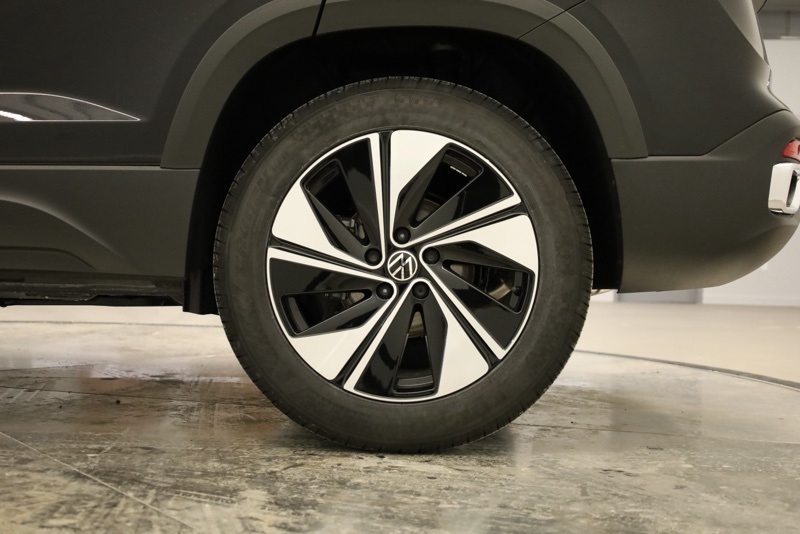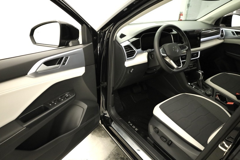 4-Wheel Disc Brakes, 6 Speakers, ABS brakes, Active Blind Spot Monitor, Air Conditioning, Alloy wheels, AM/FM radio: SiriusXM with 360L, Auto High-beam Headlights, Automatic temperature control, Brake assist, Bumpers: body-color, Cloudtex and Cloth Seating Surfaces, Compass, Delay-off headlights, Driver door bin, Driver vanity mirror, Dual front impact airbags, Dual front side impact airbags, Electronic Stability Control, Emergency communication system: VW Car-Net Safe & Secure 5-year, Exterior Parking Camera Rear, Four wheel independent suspension, Front anti-roll bar, Front Bucket Seats, Front Center Armrest, Front dual zone A/C, Front reading lights, Front Strut Rear Multi-Link Suspension, Fully automatic headlights, Heated door mirrors, Heated Front Bucket Seats, Heated front seats, Heated steering wheel, Illuminated entry, Leather Shift Knob, Low tire pressure warning, Occupant sensing airbag, Outside temperature display, Overhead airbag, Overhead console, Panic alarm, Panoramic Sunroof Package, Passenger door bin, Passenger vanity mirror, Power door mirrors, Power driver seat, Power steering, Power windows, Radio data system, Radio: MIB3 Composition Media AM/FM/HD, Rain sensing wipers, Rear anti-roll bar, Rear seat center armrest, Rear window defroster, Rear window wiper, Remote keyless entry, Security system, Speed control, Speed-sensing steering, Split folding rear seat, Spoiler, Steering wheel mounted audio controls, Tachometer, Telescoping steering wheel, Tilt steering wheel, Traction control, Trip computer, Variably intermittent wipers, Wheels: 18" 2-Tone Machined Alloy. Recent Arrival! Deep Black Pearl 2026 Volkswagen Taos 1.5T SE AWD 8-Speed Automatic with Tiptronic 1.5L I4 Turbocharged DOHC 16V LEV3-SULEV30 174hp