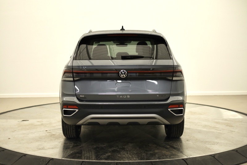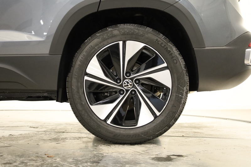 4-Wheel Disc Brakes, 6 Speakers, ABS brakes, Active Blind Spot Monitor, Air Conditioning, Alloy wheels, AM/FM radio: SiriusXM with 360L, Auto High-beam Headlights, Automatic temperature control, Brake assist, Bumpers: body-color, Cloudtex and Cloth Seating Surfaces, Compass, Delay-off headlights, Driver door bin, Driver vanity mirror, Dual front impact airbags, Dual front side impact airbags, Electronic Stability Control, Emergency communication system: VW Car-Net Safe & Secure 5-year, Exterior Parking Camera Rear, Four wheel independent suspension, Front anti-roll bar, Front Bucket Seats, Front Center Armrest, Front dual zone A/C, Front reading lights, Front Strut Rear Multi-Link Suspension, Fully automatic headlights, Heated door mirrors, Heated Front Bucket Seats, Heated front seats, Heated steering wheel, Illuminated entry, Leather Shift Knob, Low tire pressure warning, Occupant sensing airbag, Outside temperature display, Overhead airbag, Overhead console, Panic alarm, Panoramic Sunroof Package, Passenger door bin, Passenger vanity mirror, Power door mirrors, Power driver seat, Power steering, Power windows, Radio data system, Radio: MIB3 Composition Media AM/FM/HD, Rain sensing wipers, Rear anti-roll bar, Rear seat center armrest, Rear window defroster, Rear window wiper, Remote keyless entry, Security system, Speed control, Speed-sensing steering, Split folding rear seat, Spoiler, Steering wheel mounted audio controls, Tachometer, Telescoping steering wheel, Tilt steering wheel, Traction control, Trip computer, Variably intermittent wipers, VW Care, Wheels: 18" 2-Tone Machined Alloy. Recent Arrival! Platinum Gray Metallic 2026 Volkswagen Taos 1.5T SE AWD 8-Speed Automatic with Tiptronic 1.5L I4 Turbocharged DOHC 16V LEV3-SULEV30 174hp