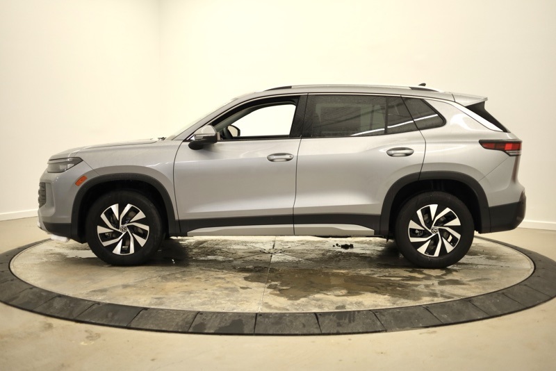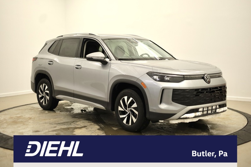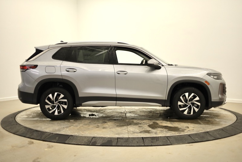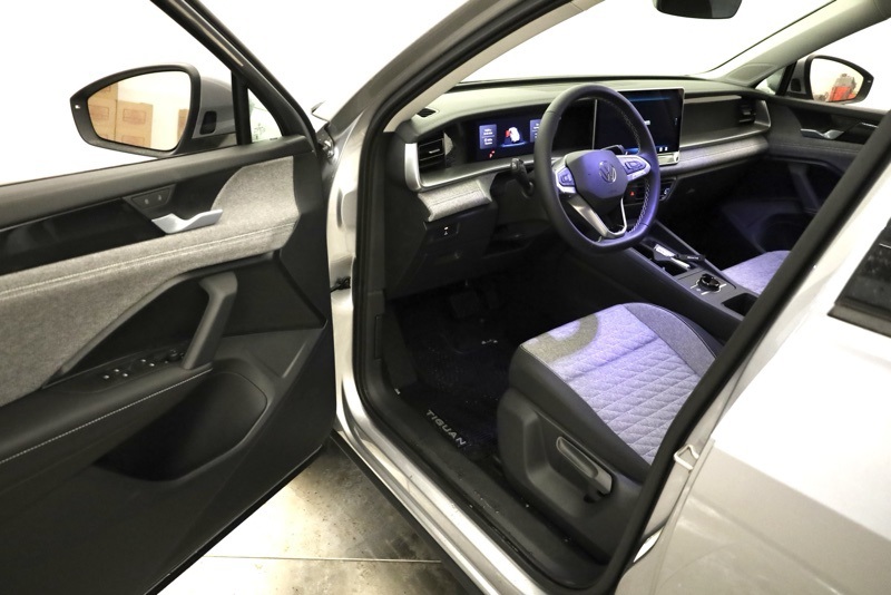 AWD, 4-Wheel Disc Brakes, 4-Wheel Independent Suspension, 7 Speakers, ABS brakes, Air Conditioning, Alloy wheels, AM/FM radio: SiriusXM with 360L, Auto High-beam Headlights, Automatic temperature control, Brake assist, Bumpers: body-color, Cloth Seating Surfaces, Compass, Delay-off headlights, Driver door bin, Driver vanity mirror, Dual front impact airbags, Dual front side impact airbags, Electronic Stability Control, Emergency communication system, Exterior Parking Camera Rear, Four wheel independent suspension, Front anti-roll bar, Front Bucket Seats, Front Center Armrest, Front dual zone A/C, Front reading lights, Fully automatic headlights, Heated door mirrors, Heated Front Seats, Heated front seats, Illuminated entry, Knee airbag, Leather Shift Knob, Low tire pressure warning, Occupant sensing airbag, Outside temperature display, Overhead airbag, Overhead console, Panic alarm, Passenger door bin, Passenger vanity mirror, Power door mirrors, Power steering, Power windows, Radio data system, Radio: MIB4 Composition Media Touchscreen with AM/FM, Rain sensing wipers, Rear anti-roll bar, Rear reading lights, Rear seat center armrest, Rear side impact airbag, Rear window defroster, Rear window wiper, Remote keyless entry, Speed control, Speed-sensing steering, Split folding rear seat, Spoiler, Steering wheel mounted audio controls, Tachometer, Telescoping steering wheel, Tilt steering wheel, Traction control, Trip computer, Turn signal indicator mirrors, Variably intermittent wipers, VW Care, Wheels: 17" 2-Tone Machined Alloy. pyrite silver metallic 2026 Volkswagen Tiguan 2.0T S AWD 8-Speed Automatic 2.0L TSI DOHC