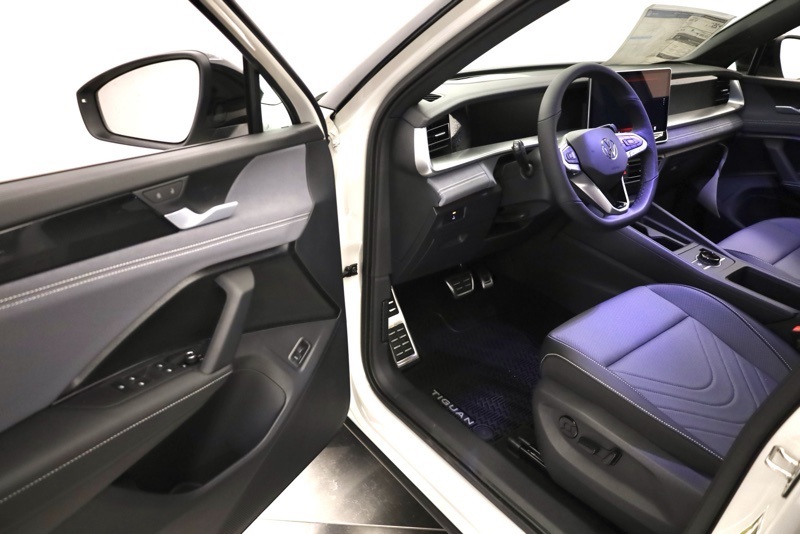 AWD, 4-Wheel Disc Brakes, 6 Speakers, ABS brakes, Active Cruise Control, Air Conditioning, Alloy wheels, AM/FM radio: SiriusXM, Auto High-beam Headlights, Auto-dimming Rear-View mirror, Automatic temperature control, Brake assist, Bumpers: body-colour, Compass, Delay-off headlights, Driver door bin, Driver vanity mirror, Dual front impact airbags, Dual front side impact airbags, Electronic Stability Control, Emergency communication system: VW Car-Net Safe & Secure (4 years included), Exterior Parking Camera Rear, Four wheel independent suspension, Front anti-roll bar, Front Bucket Seats, Front dual zone A/C, Front reading lights, Fully automatic headlights, Heated door mirrors, Heated Front Bucket Seats, Heated front seats, Heated steering wheel, Illuminated entry, Leather Shift Knob, Leather steering wheel, Leatherette Seating Surfaces, Low tire pressure warning, Occupant sensing airbag, Outside temperature display, Overhead airbag, Overhead console, Panic alarm, Passenger door bin, Passenger vanity mirror, Power door mirrors, Power driver seat, Power Liftgate, Power moonroof: Panoramic, Power steering, Power windows, Radio data system, Radio: 12.9" Touchscreen Infotainment System, Rain sensing wipers, Rear anti-roll bar, Rear reading lights, Rear window defroster, Rear window wiper, Remote keyless entry, Security system, Speed control, Speed-sensing steering, Split folding rear seat, Spoiler, Sport steering wheel, Steering wheel mounted audio controls, Tachometer, Telescoping steering wheel, Tilt steering wheel, Traction control, Trip computer, Turn signal indicator mirrors, Variably intermittent wipers, Wheels: 20" York Black Alloy. Recent Arrival! 6u2t 2026 Volkswagen Tiguan 2.0T SE R-Line Black AWD 8-Speed Automatic 2.0L I4