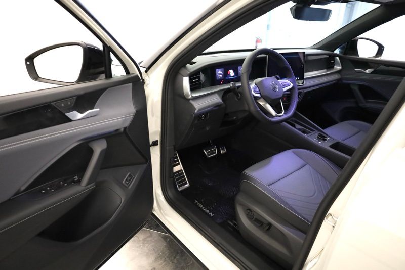 AWD, 4-Wheel Disc Brakes, 4-Wheel Independent Suspension, 7 Speakers, ABS brakes, Air Conditioning, Alloy wheels, AM/FM radio: SiriusXM with 360L, Auto High-beam Headlights, Auto-dimming Rear-View mirror, Automatic temperature control, Brake assist, Bumpers: body-color, Compass, Delay-off headlights, Driver door bin, Driver vanity mirror, Dual front impact airbags, Dual front side impact airbags, Electronic Stability Control, Emergency communication system, Exterior Parking Camera Rear, Four wheel independent suspension, Front anti-roll bar, Front Bucket Seats, Front Center Armrest, Front dual zone A/C, Front reading lights, Fully automatic headlights, Heads-Up Display, Heated door mirrors, Heated Front Seats, Heated front seats, Illuminated entry, Knee airbag, Leather Shift Knob, Leather steering wheel, Low tire pressure warning, Occupant sensing airbag, Outside temperature display, Overhead airbag, Overhead console, Panic alarm, Passenger door bin, Passenger vanity mirror, Perforated V-Tex Leatherette Seating Surfaces, Power door mirrors, Power driver seat, Power Liftgate, Power moonroof: Panoramic, Power steering, Power windows, Radio data system, Radio: MIB4 Composition Media Touchscreen with AM/FM, Rain sensing wipers, Rear anti-roll bar, Rear reading lights, Rear seat center armrest, Rear side impact airbag, Rear window defroster, Rear window wiper, Remote keyless entry, Security system, Speed control, Speed-sensing steering, Split folding rear seat, Spoiler, Sport steering wheel, Steering wheel mounted audio controls, Tachometer, Telescoping steering wheel, Tilt steering wheel, Traction control, Trip computer, Turn signal indicator mirrors, Variably intermittent wipers, VW Care, Wheels: 20" Black Painted Alloy. Recent Arrival! Sandstone with Deep Black Roof 2026 Volkswagen Tiguan 2.0T SE R-Line Black AWD 8-Speed Automatic 2.0L TSI DOHC
