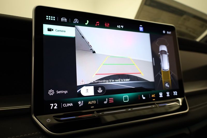 The panoramic power moonroof brings in natural light, creating an open and airy atmosphere. Rain sensing wipers, fully automatic headlights, auto high beam headlights, heated door mirrors, and an exterior parking camera rear help you stay confident in changing conditions. An auto dimming rear view mirror, compass, outside temperature display, and trip computer keep key information clearly visible.