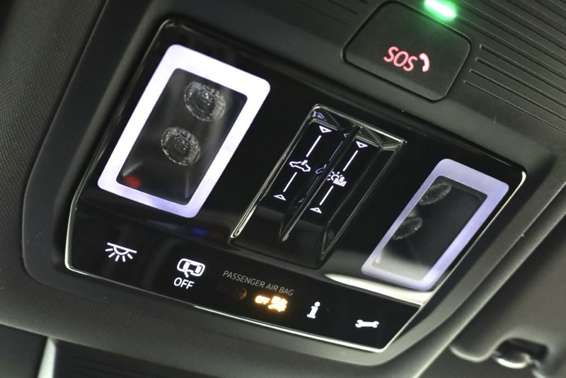 - First and second-row sliding and tilting glass sunroof with express open/close activation sunshade