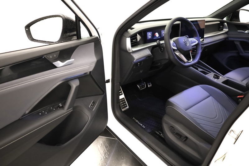 AWD, 4-Wheel Disc Brakes, ABS brakes, Active Cruise Control, Air Conditioning, Alloy wheels, Auto High-beam Headlights, Auto-dimming Rear-View mirror, Automatic temperature control, Brake assist, Compass, Delay-off headlights, Driver door bin, Driver vanity mirror, Dual front impact airbags, Dual front side impact airbags, Electronic Stability Control, Exterior Parking Camera Rear, Four wheel independent suspension, Front anti-roll bar, Front Bucket Seats, Front dual zone A/C, Front reading lights, Fully automatic headlights, Heated door mirrors, Heated front seats, Illuminated entry, Leather Shift Knob, Leather steering wheel, Low tire pressure warning, Occupant sensing airbag, Outside temperature display, Overhead airbag, Overhead console, Panic alarm, Passenger door bin, Passenger vanity mirror, Power door mirrors, Power driver seat, Power Liftgate, Power moonroof: Panoramic, Power steering, Power windows, Radio data system, Rain sensing wipers, Rear anti-roll bar, Rear reading lights, Rear window defroster, Rear window wiper, Remote keyless entry, Security system, Speed control, Speed-sensing steering, Split folding rear seat, Spoiler, Sport steering wheel, Steering wheel mounted audio controls, Tachometer, Telescoping steering wheel, Tilt steering wheel, Traction control, Trip computer, Turn signal indicator mirrors, Variably intermittent wipers. pal White Pearl 2026 Volkswagen Tiguan 2.0T SE R-Line Black AWD 8-Speed Automatic 2.0L TSI DOHC