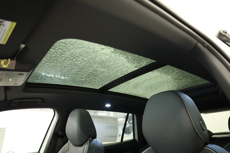- First and second-row sliding and tilting glass sunroof with express open/close activation sunshade