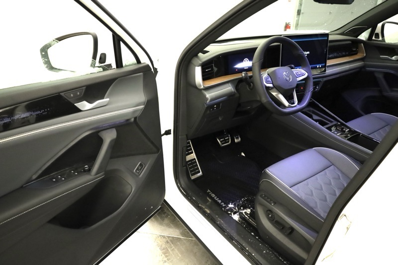 AWD, 12 Speakers, 4-Wheel Disc Brakes, 4-Wheel Independent Suspension, ABS brakes, Air Conditioning, Alloy wheels, AM/FM radio: SiriusXM with 360L, Auto High-beam Headlights, Auto-dimming Rear-View mirror, Automatic temperature control, Brake assist, Bumpers: body-color, Compass, Delay-off headlights, Driver door bin, Driver vanity mirror, Dual front impact airbags, Dual front side impact airbags, Electronic Stability Control, Emergency communication system, Exterior Parking Camera Rear, Four wheel independent suspension, Front anti-roll bar, Front Bucket Seats, Front Center Armrest, Front dual zone A/C, Front fog lights, Front reading lights, Fully automatic headlights, Genuine wood dashboard insert, harman/kardon® Speakers, Heads-Up Display, Heated and Actively Ventilated Front Seats, Heated door mirrors, Heated front seats, Heated rear seats, Heated steering wheel, Illuminated entry, Knee airbag, Leather Shift Knob, Leather steering wheel, Low tire pressure warning, Memory seat, Navigation System, Occupant sensing airbag, Outside temperature display, Overhead airbag, Overhead console, Panic alarm, Passenger door bin, Passenger vanity mirror, Perforated Varenna Leather Seating Surfaces, Power door mirrors, Power driver seat, Power moonroof: Panoramic, Power passenger seat, Power steering, Power windows, Radio data system, Radio: MIB4 Discover Media Touchscreen Navigation with AM/FM, Rain sensing wipers, Rear air conditioning, Rear anti-roll bar, Rear reading lights, Rear seat center armrest, Rear side impact airbag, Rear window defroster, Rear window wiper, Remote keyless entry, Security system, Speed control, Speed-sensing steering, Split folding rear seat, Spoiler, Sport steering wheel, Steering wheel mounted audio controls, Tachometer, Telescoping steering wheel, Tilt steering wheel, Traction control, Trip computer, Turn signal indicator mirrors, Variably intermittent wipers, Ventilated front seats, VW Care, Wheels: 20" 2-Tone Machined Alloy. opal white pearl 2026 Volkswagen Tiguan 2.0T SEL R-Line Turbo AWD 8-Speed Automatic 2.0L Turbocharged
