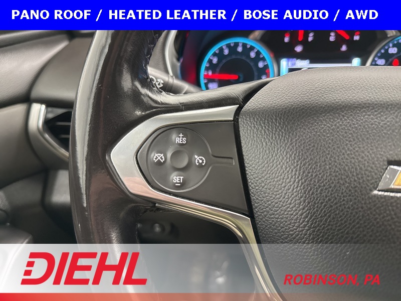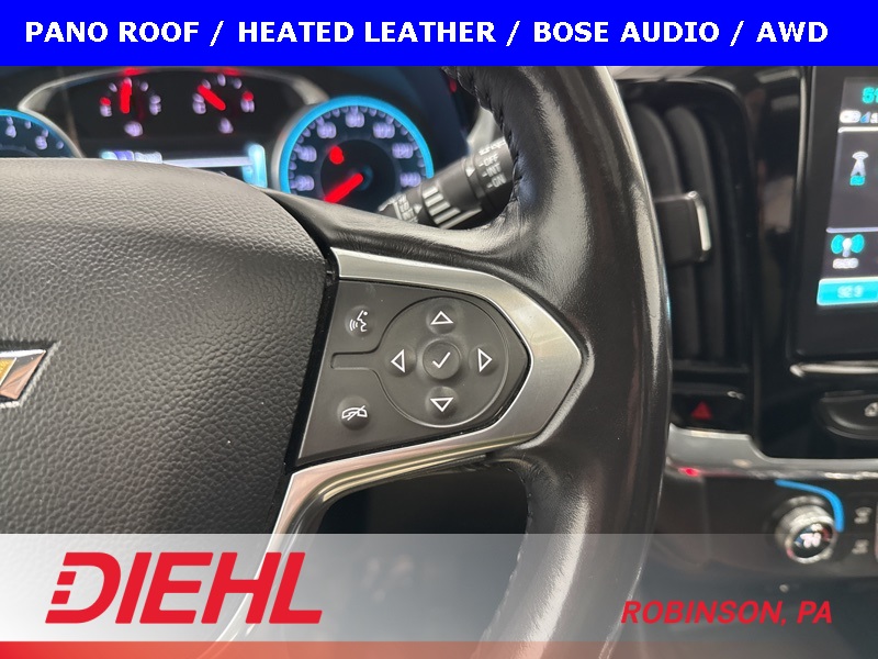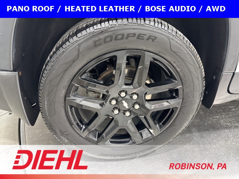 Inside, comfort takes center stage with heated leather seats, tri-zone climate control, a heated steering wheel, and that glorious Bose 10-speaker sound system. The Chevrolet MyLink 8-inch touchscreen with navigation and Apple CarPlay/Android Auto integration keeps you connected and in control. There’s also a hands-free power liftgate, remote start, and a dual-pane sunroof that lets everyone enjoy a little sunshine — or just watch the rain while pretending you’re in a music video.