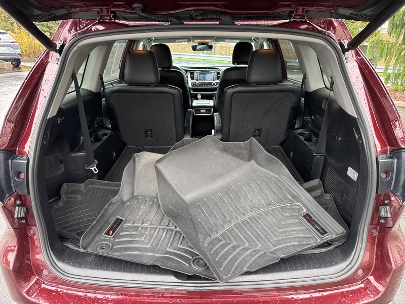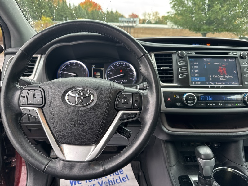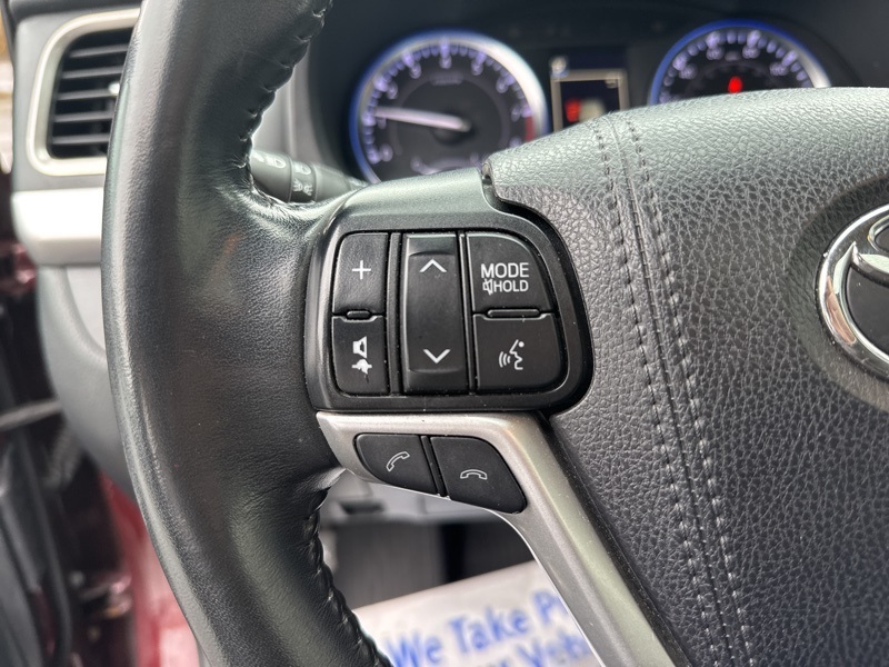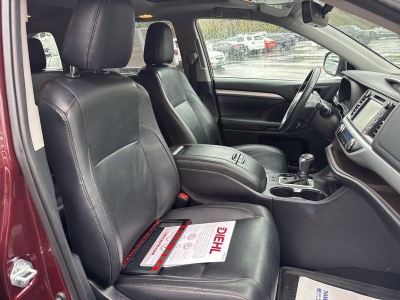 Salsa Red Pearl 2019 Toyota Highlander XLE 4D Sport Utility AWD 3.5L V6 8-Speed Automatic Electronic with ECT-i AWD, ABS brakes, Active Cruise Control, Alloy wheels, Electronic Stability Control, Front dual zone A/C, Heated door mirrors, Heated Front Bucket Seats, Heated front seats, Illuminated entry, Leather Seat Trim, Low tire pressure warning, Navigation System, Power Liftgate, Power moonroof, Remote keyless entry, Traction control, 3.003 Axle Ratio, 3rd row seats: split-bench, 4-Wheel Disc Brakes, 6 Speakers, Air Conditioning, AM/FM radio: SiriusXM, Auto High-beam Headlights, Auto-dimming Rear-View mirror, Automatic temperature control, Brake assist, Bumpers: body-color, CD player, Delay-off headlights, Driver door bin, Driver vanity mirror, Dual front impact airbags, Dual front side impact airbags, Exterior Parking Camera Rear, Four wheel independent suspension, Front anti-roll bar, Front Bucket Seats, Front Center Armrest, Front fog lights, Front reading lights, Fully automatic headlights, Garage door transmitter, Knee airbag, Leather Shift Knob, Occupant sensing airbag, Outside temperature display, Overhead airbag, Overhead console, Panic alarm, Passenger door bin, Passenger vanity mirror, Power door mirrors, Power driver seat, Power passenger seat, Power steering, Power windows, Radio: Entune Premium Audio w/Nav & App Suite, Rear air conditioning, Rear anti-roll bar, Rear reading lights, Rear window defroster, Rear window wiper, Reclining 3rd row seat, Roof rack: rails only, Security system, Speed control, Speed-sensing steering, Split folding rear seat, Spoiler, Steering wheel mounted audio controls, Tachometer, Telescoping steering wheel, Tilt steering wheel, Trip computer, Turn signal indicator mirrors, Variably intermittent wipers, and Wheels: 18" Turbine-Look Alloy. Odometer is 43234 miles below market average! 20/26 City/Highway MPG