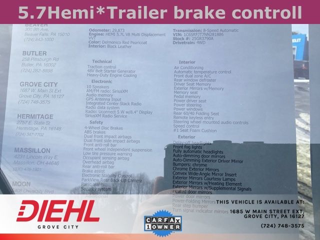Delmonico Red Pearlcoat 2022 Ram 1500 Laramie 4D Crew Cab 4WD HEMI 5.7L V8 Multi Displacement VVT 8-Speed Automatic