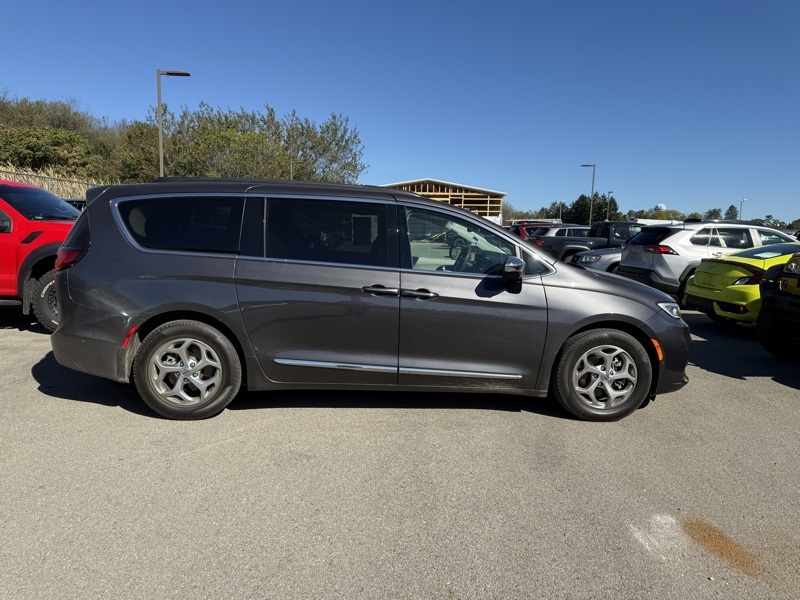 **BLUETOOTH HANDS FREE PHONE**, **LEATHER**, **MOONROOF**, **HEATED AND COOLED FRONT SEATS**, **HEATED STEERING WHEEL**, **HEATED REAR SEATS**, **FRONT & REAR SONAR**, **FACTORY REMOTE START**, **POWER LIFTGATE**, **18" ALLOY WHEELS**, **360 SURROUND VIEW CAMERA**, 13 Speakers, 3.25 Axle Ratio, 360 Surround View Camera System, 3rd row seats: split-bench, 4-Wheel Disc Brakes, ABS brakes, Air Conditioning, Alloy wheels, AM/FM radio: SiriusXM 360L, Apple CarPlay/Android Auto, Audio memory, Auto-dimming Rear-View mirror, Automatic temperature control, Black Seats, Bodyside moldings, Brake assist, Bumpers: body-color, Compass, Delay-off headlights, Driver door bin, Driver vanity mirror, Driver's Seat Mounted Armrest, Dual front impact airbags, Dual front side impact airbags, Electronic Stability Control, Emergency communication system: SiriusXM Guardian, Four wheel independent suspension, Front anti-roll bar, Front Bucket Seats, Front dual zone A/C, Front fog lights, Front reading lights, Fully automatic headlights, Garage door transmitter, Heated door mirrors, Heated front seats, Heated rear seats, Heated steering wheel, Illuminated entry, Integrated Active Noise Cancellation, Knee airbag, Low tire pressure warning, Memory seat, Nappa Leather Bucket Seats, Navigation System, Occupant sensing airbag, Outside temperature display, Overhead airbag, Overhead console, Panic alarm, Parallel & Perpendicular Park Assist w/Stop, ParkSense Front/Rear Park Assist w/Stop, ParkView Rear Back-Up Camera, Passenger door bin, Passenger seat mounted armrest, Passenger vanity mirror, Power door mirrors, Power driver seat, Power Folding 3rd Row Seat, Power Liftgate, Power moonroof, Power passenger seat, Power steering, Power windows, Quick Order Package 27P, Radio data system, Radio: Uconnect 5 Nav w/10.1" Display, Rain sensing wipers, Rear air conditioning, Rear reading lights, Rear window defroster, Rear window wiper, Reclining 3rd row seat, Remote keyless entry, Roof rack, Safety Sphere, Security system, Speed control, Split folding rear seat, Spoiler, Steering wheel mounted audio controls, Tachometer, Telescoping steering wheel, Tilt steering wheel, Touring Suspension, Traction control, Trip computer, Turn signal indicator mirrors, Variably intermittent wipers, Ventilated front seats, Voltmeter, Wheels: 18" x 7.5" Painted Aluminum Design 2. Recent Arrival! Certified. FCA US LLC Certified Pre-Owned Details: * Roadside Assistance * Vehicle History * 125 Point Inspection * Powertrain Limited Warranty: 84 Month/100,000 Mile (whichever comes first) from original in-service date * Vehicles Up to 75,000 Miles and/or 5 Model Years. 24-Hour Towing & Roadside Assistance, Car Rental Allowance, CARFAX® Vehicle History ReportTM and an Introductory 3-month Subscription to SiriusXM® Satellite Radio & Certified Warranty Upgrades * Transferable Warranty * Limited Warranty: 3 Month/3,000 Mile (whichever comes first) after new car warranty expires or from certified purchase date * Warranty Deductible: $100Granite Crystal Metallic Clearcoat 2023 Chrysler Pacifica Limited FWD 9-Speed 948TE Automatic 3.6L V6 24V VVTOdometer is 32400 miles below market average! 19/28 City/Highway MPGType your sentence here.