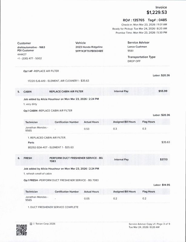 - Cabin air filter