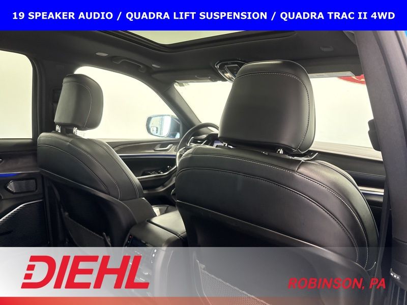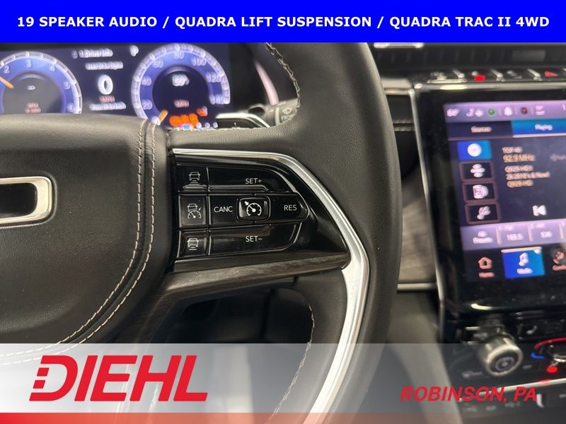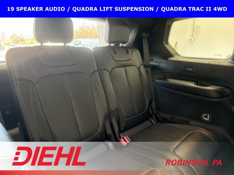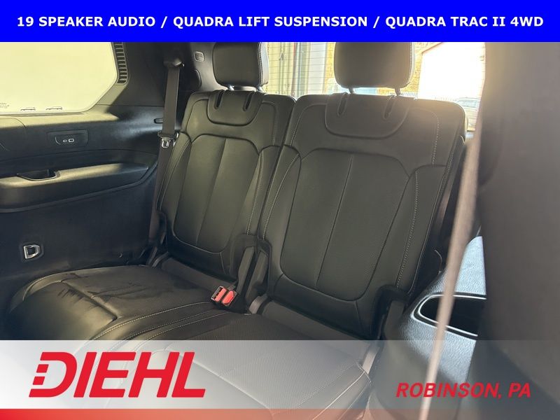 Step inside and you'll be surrounded by premium Nappa leather seating, a heated steering wheel, and a host of advanced technology features. The Uconnect 5 infotainment system with navigation and a 10.1" display keeps you connected and entertained, while the 19-speaker high-performance audio system delivers an immersive listening experience.