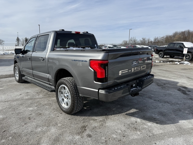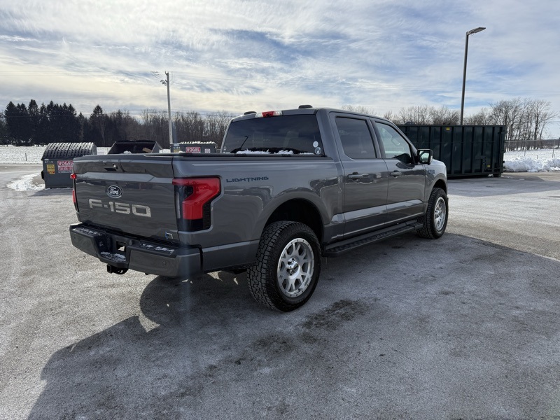 **BLUETOOTH HANDS FREE PHONE**, **BACK-UP CAMERA**, **CLEAN CARFAX ONE OWNER**, **MAX TRAILERING PACKAGE**, **PRO POWER ONBOARD**, **B&O SOUND SYSTEM**, **PRE COLLISION SYSTEM**, **LANE KEEP ASSIST**, **HEATED FRONT SEATS**, **HEATED STEERING WHEEL**, **AUTO HIGH BEAMS**, 4-Wheel Disc Brakes, 8 Speakers, ABS brakes, Adjustable pedals, Air Conditioning, Alloy wheels, Auto High-beam Headlights, Auto-dimming Rear-View mirror, Automatic temperature control, Brake assist, Bumpers: body-color, Cloth Heated Front Seats, Compass, Delay-off headlights, Driver door bin, Driver vanity mirror, Dual front impact airbags, Dual front side impact airbags, Electronic Stability Control, Emergency communication system: SYNC 4 911 Assist, Equipment Group 312A Standard, Four wheel independent suspension, Front anti-roll bar, Front Bucket Seats, Front Center Armrest, Front dual zone A/C, Front reading lights, Fully automatic headlights, Heated door mirrors, Heated front seats, Heated steering wheel, Illuminated entry, Knee airbag, Low tire pressure warning, Max Trailer Tow Package, Mobile Power Cord (120/240V), Navigation system: Connected Navigation, Occupant sensing airbag, Outside temperature display, Overhead airbag, Overhead console, Panic alarm, Passenger door bin, Passenger vanity mirror, Power door mirrors, Power driver seat, Power passenger seat, Power steering, Power windows, Pro Power Onboard - 9.6 kW, Radio data system, Radio: B&O Sound System by Bang & Olufsen, Rear anti-roll bar, Rear reading lights, Rear step bumper, Rear window defroster, Remote keyless entry, Security system, Speed control, Speed-sensing steering, Split folding rear seat, Steering wheel mounted audio controls, SYNC 4A w/Enhanced Voice Recognition, Telescoping steering wheel, Tilt steering wheel, Traction control, Trailer Brake Controller, Trip computer, Turn signal indicator mirrors, Variably intermittent wipers, Wheels: 20" Alloy Dark Carbonized Gray. Recent Arrival! CARFAX One-Owner. Clean CARFAX. Gray Metallic 2024 Ford F-150 Lightning Flash AWD Single-Speed Automatic Electric Motor