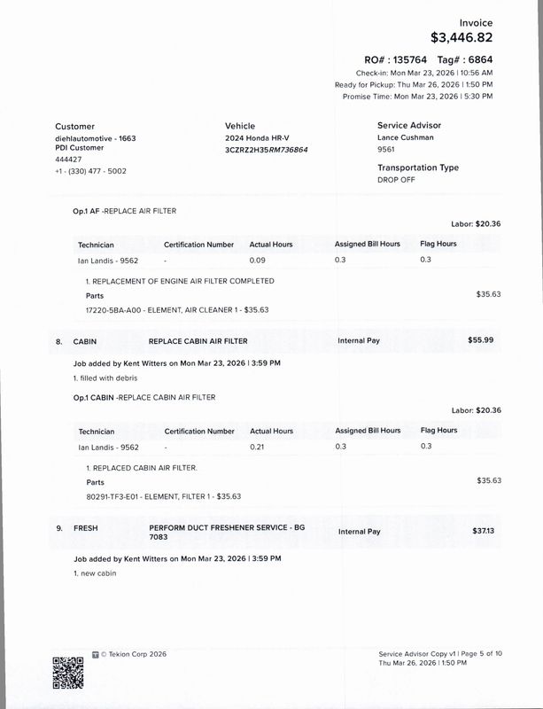 - Cabin air filter