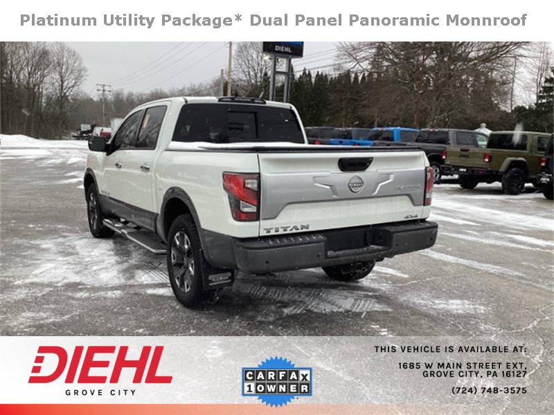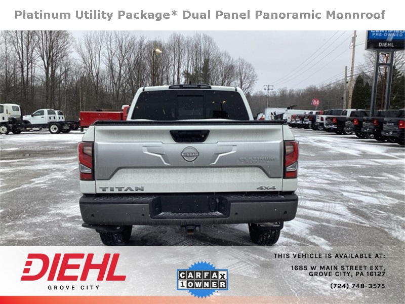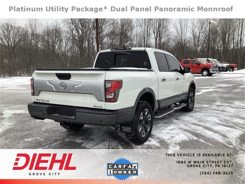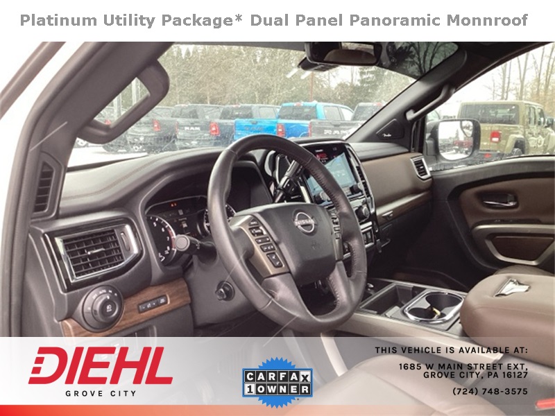 4WD, Apple CarPlay/Android Auto, Dual Panel Panoramic Moonroof w/Tilt & Slide, Heated front seats, Heated rear seats, Heated steering wheel, Moonroof Package, Navigation system: NissanConnect with Navigation and Services, Platinum Reserve Utility Package, Platinum Utility Package, Rear Utility Bed Step, TITAN Box, Ventilated front seats. Recent Arrival!