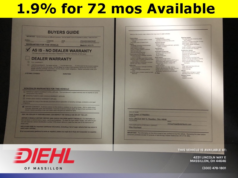 **Clean Carfax**, **One Owner**, **Subaru Certified**, Standard Model. Certified. 2025 Subaru Crosstrek Premium CARFAX One-Owner. Clean CARFAX.